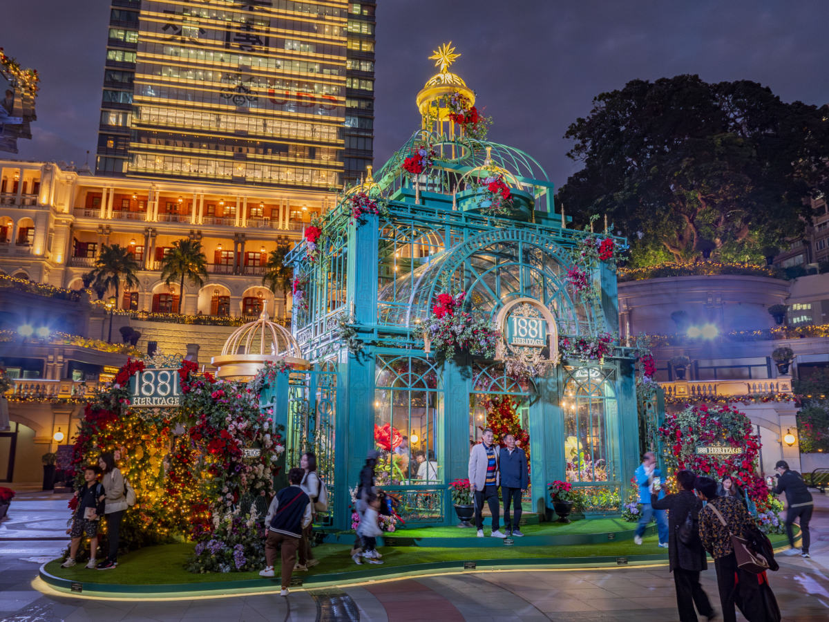 尖沙咀地標「1881」今個冬日以「Botanical Christmas」為主題,將「1881」打造成古典維多利亞式的溫室植物園。溫室高達12米,內設一棵約 4 米高的聖誕樹,而左右兩邊設有以鑄鐵露台為靈感的鑄鐵雕花長櫈~周圍更是環繞著鮮豔多彩的花卉與濃綠潤澤的植物,加上多個節日拱門裝置~讓人感受到濃厚的聖誕氛圍!