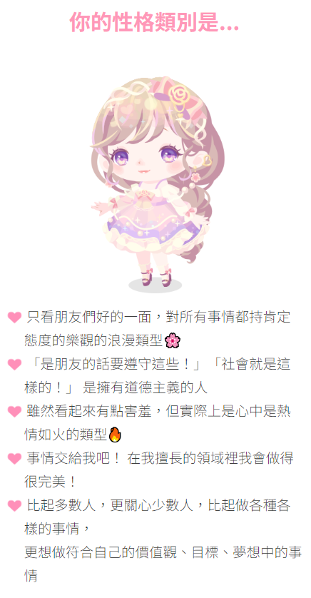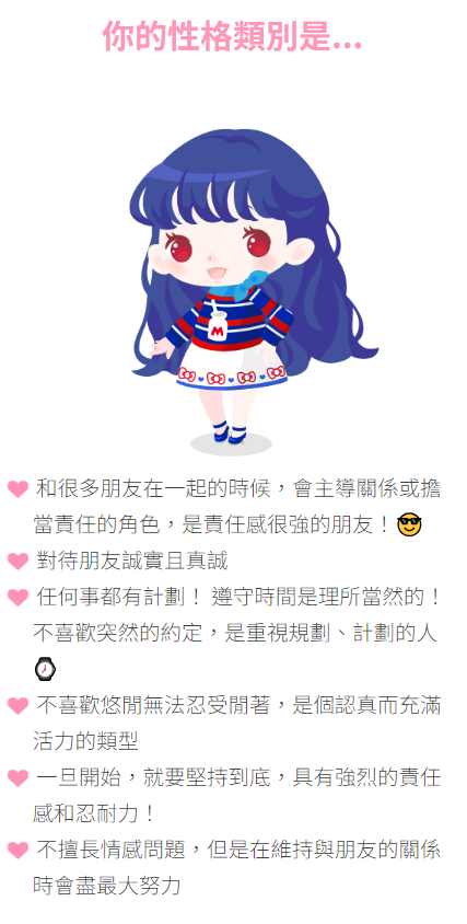 除此之外,今次這個測試也會分析出你的性格類別,並詳細列出你的性格特點,趕快來試下準不準吧!