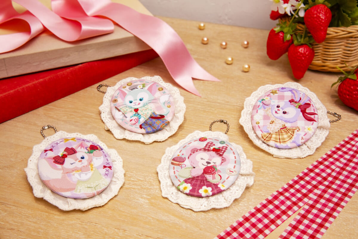 全系列的周邊商品,款款都超級可愛!其中有ShellieMay與她的朋友們送給Duffy的草莓胸針抱枕,上面還繫上綠色格仔圖案的絲帶,以及收到胸針而感到高興的Duffy毛絨公仔,兩個款式都十分可愛,超值得入手!