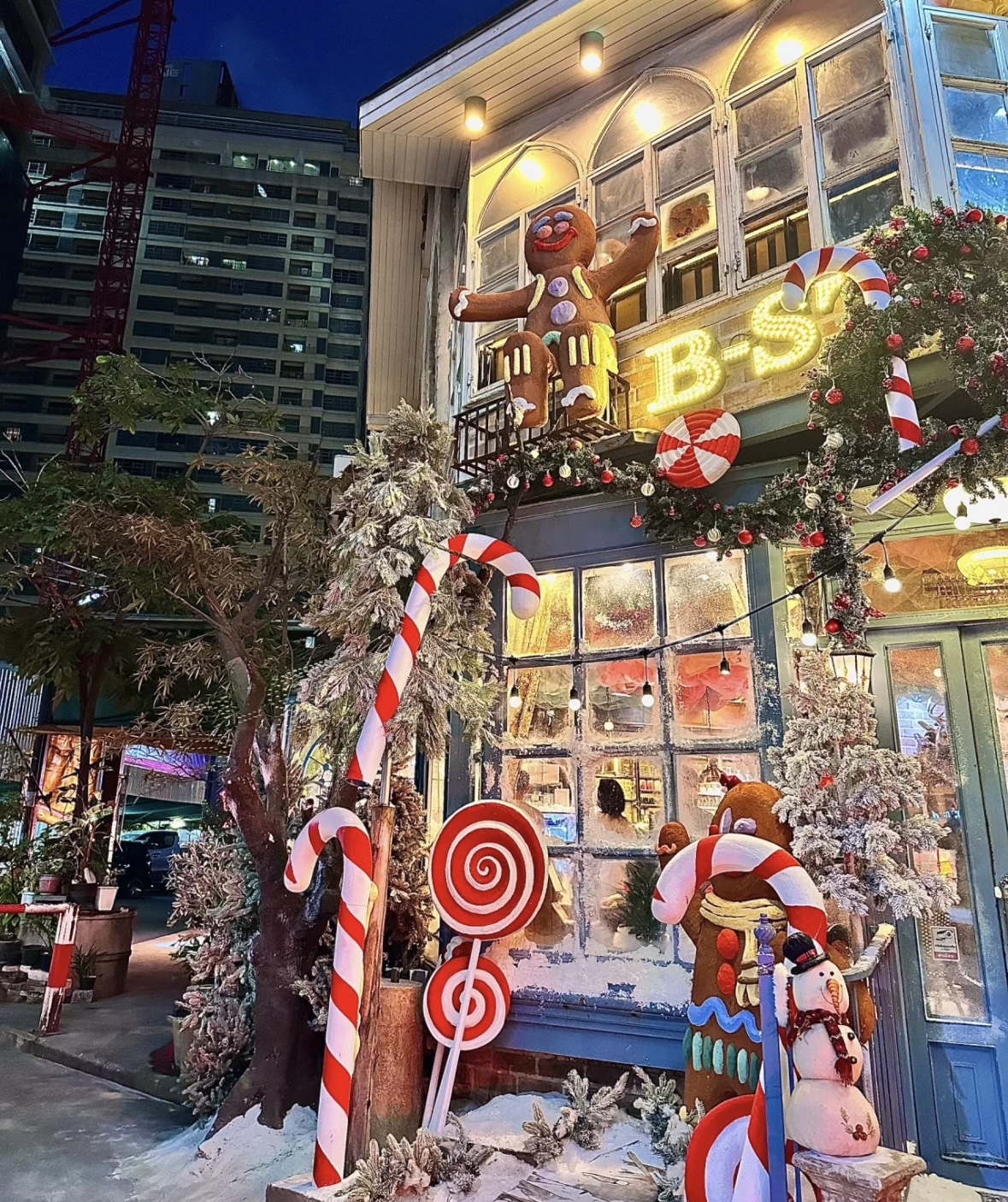 B-STORY是一座小教堂改造而成的咖啡店,由於這間咖啡店每年都有裝飾得超有聖誕氣氛,吸引了不少遊客及當地人前往打卡。今年咖啡店在門口擺放了薑餅人、聖誕糖果及聖誕樹的裝飾,充滿歐陸風情!而且B-STOR的地點位置便利,在BTS Ratchathewi站2號出口,附近又有大型商場Siam Paragon可以逛街,難怪會這麼受歡迎~