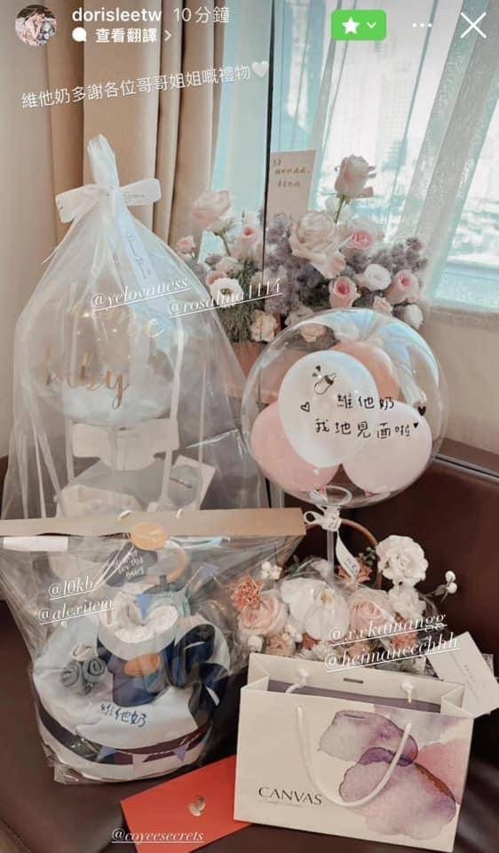 早在上月中,Doris被IG密友踢爆已平安誕下B仔「維他奶」,她在IG上傳一堆禮物相,當中又有花、氣球及利是等等,Doris標註了前微辣藝人Yelo、Rosalina及Lok B等好友:「維他奶多謝各位哥哥姐姐嘅禮物」~