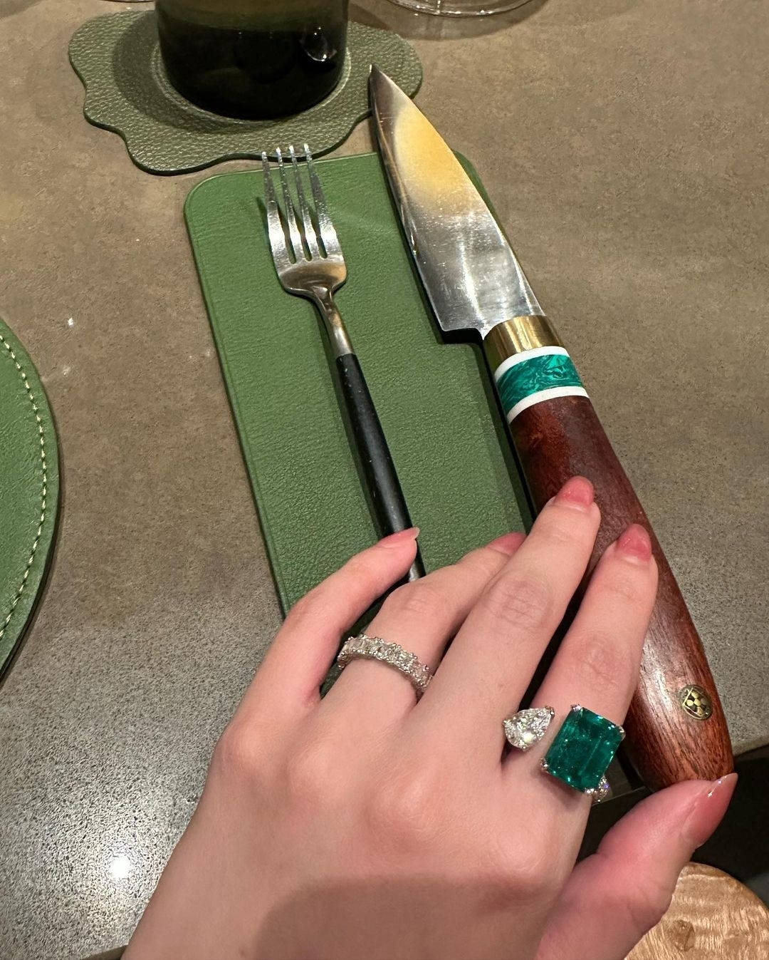 陳雪鈴的身家相當豐厚,不時在IG晒名牌及坐私人飛機周遊列國,家中又大到好像皇宮一樣。早前她又晒出一顆巨型綠寶石戒指,又有鑽石襯托相信價錢不菲。
