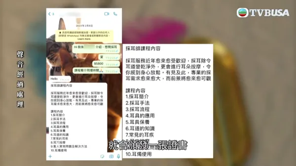 隨後院方的負責人邀請楊小姐擔任學院的採耳導師,楊小姐此時才驚覺課程有古怪,特別是院內的「採耳課程」居然不需要考試,而且無論學生學習進度未如理想都能獲頒發證書。之後負責人又邀請楊小姐教授「寵物按摩課程」,但對方卻沒有為她提供培訓,令她感到很奇怪,並坦言完全不能接受。