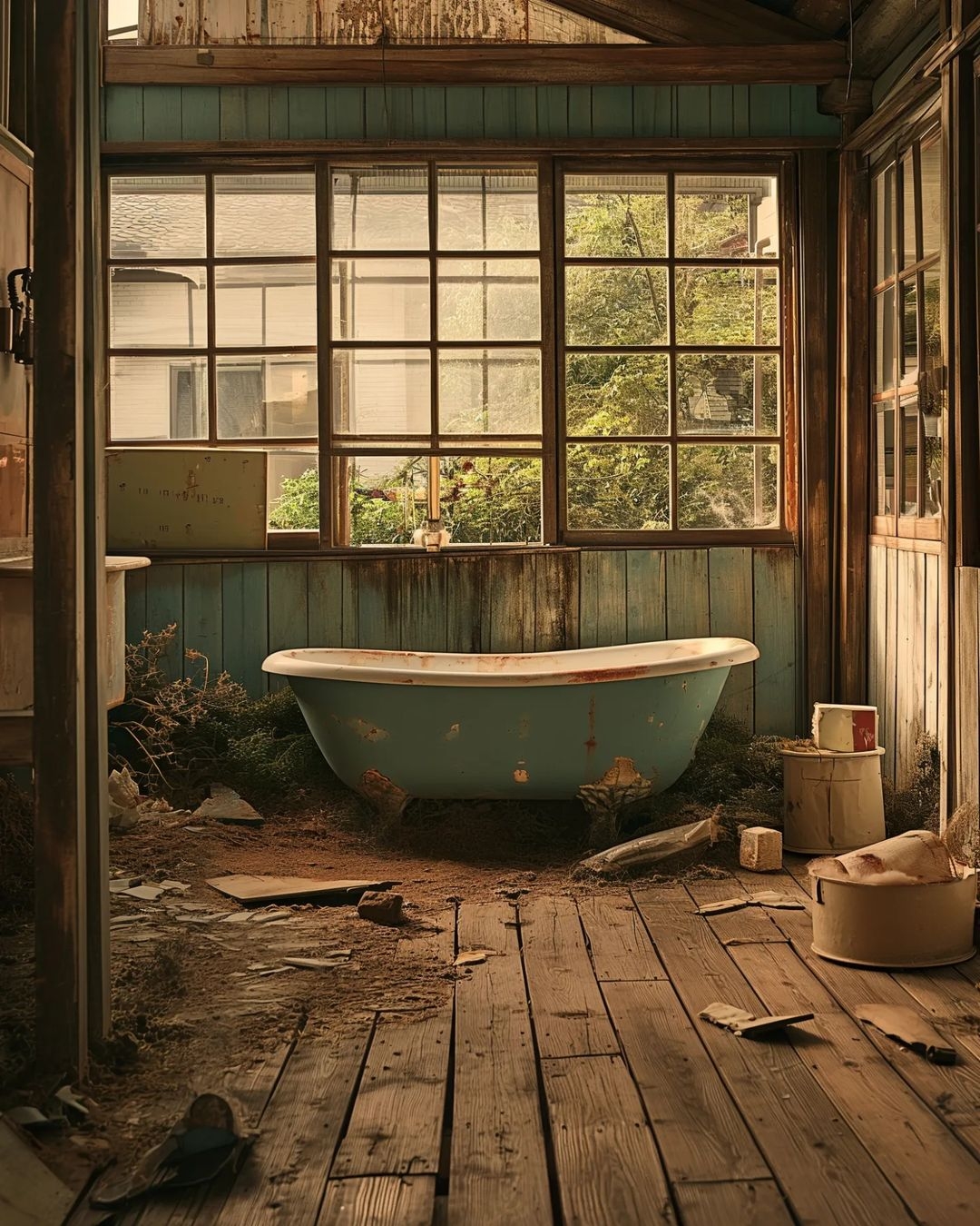 就連草子和次子的家也變得超級破舊!在動畫裡,雖然她們一家的房子在搬進去的時候有點老舊,但看起來只是需要稍微收拾就能入住。不過在AI版本繪製之後,原本的房子也同廢墟沒有分別!(也不至於這麼破爛吧~)