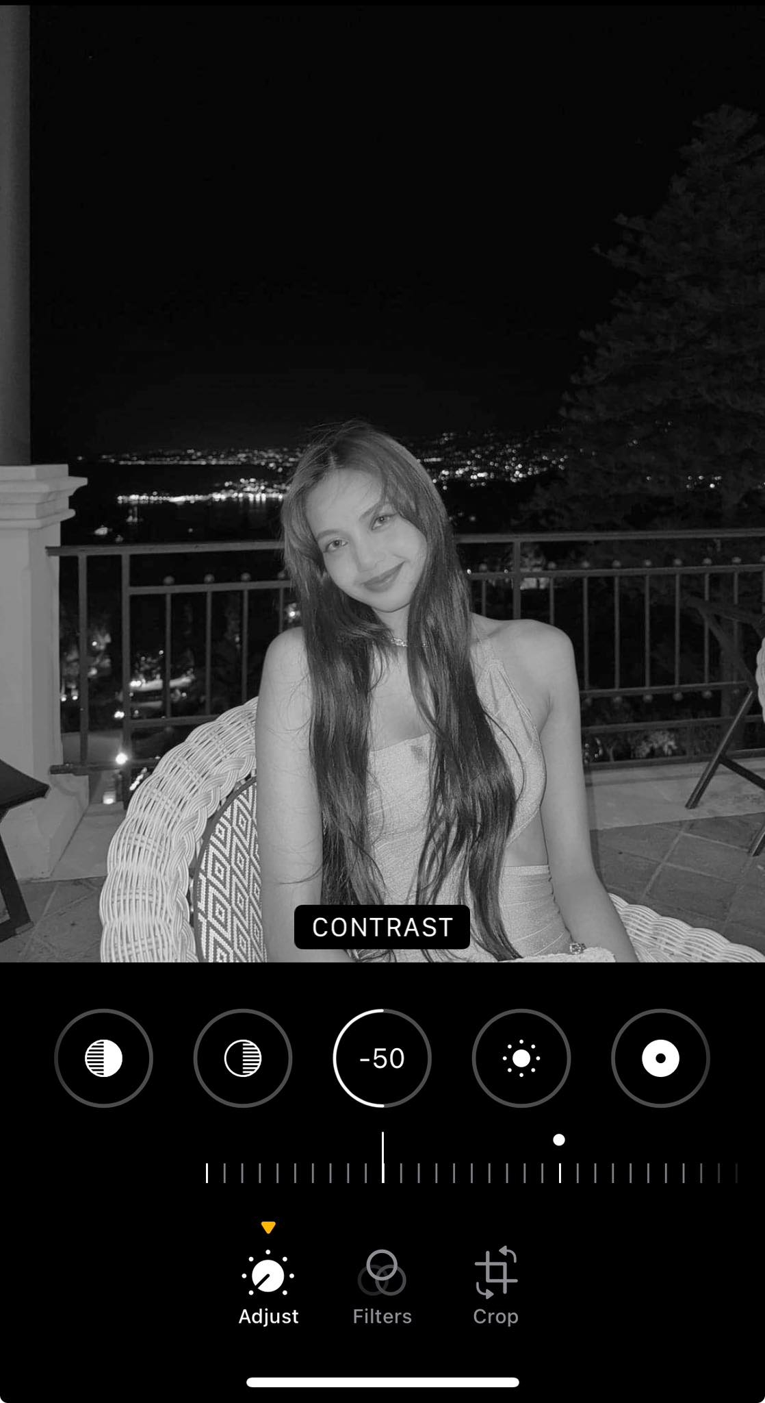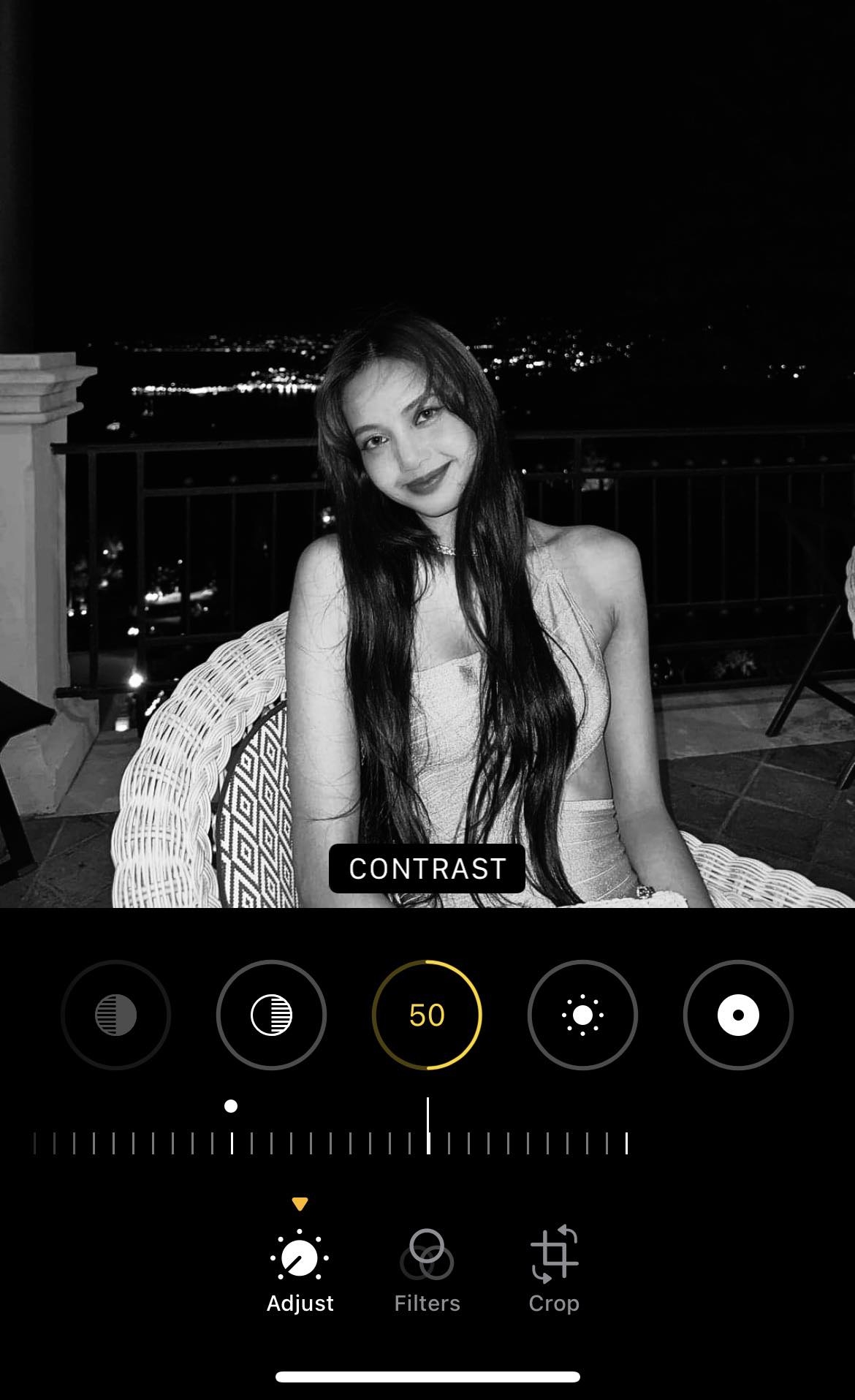按手機內編輯的調整,找到「對比度」,並將圖片調成「對比度+50」&「對比度-50」兩張進行比對。這時候可以看看如果「對比度+50」更加好看,代表你可能更適合濃妝,是屬於濃顏系;「對比度-50」好看,代表你可能更適合淡妝,是屬於淡顏系。