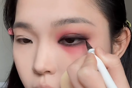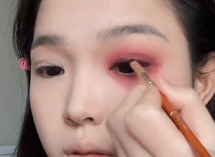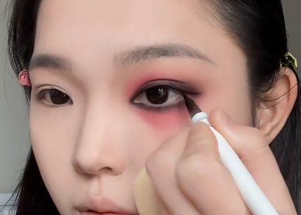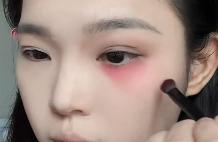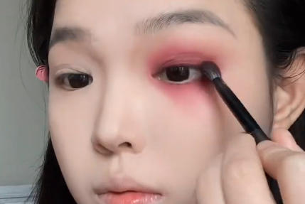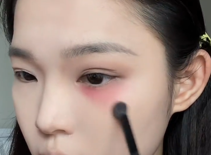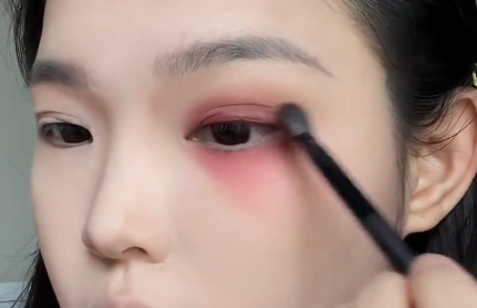 再使用紅色或啡色眼影或胭脂掃在下眼瞼位置,可少量多次地上色,再利用餘粉掃過邊緣,令妝感看起來更自然。