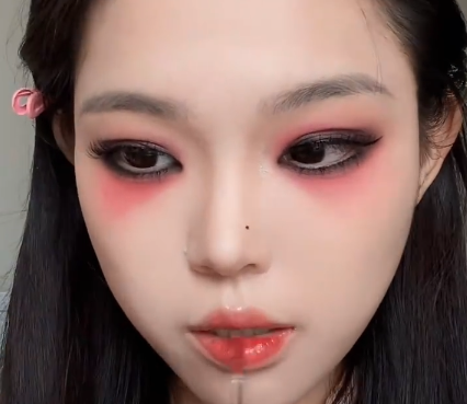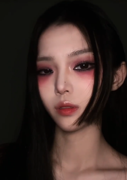 這個妝容稍微有點暗黑又有點叛逆,其中大面積的紅色眼影還能營造出性感又神秘的氛圍,散發出陰鬱的病嬌感。再配合公主切髮型,令人耳目一新,就猶如「吸血鬼」一樣!