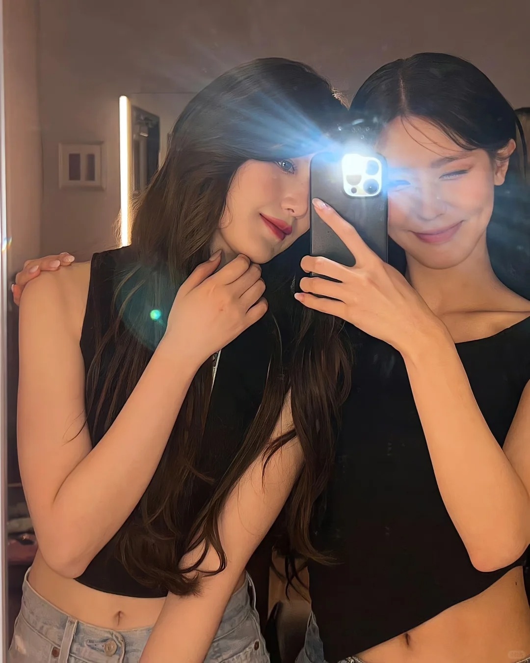 與閨蜜自拍也是少不了對鏡自拍啦~大家和閨蜜對鏡自拍時可以打開閃光燈,呈現出一種淡淡的光暈效果,能夠製造一種復古的氛圍感,也可以當作微微遮臉的功能,照片看起來就好似很隨意就拍下的靚相~