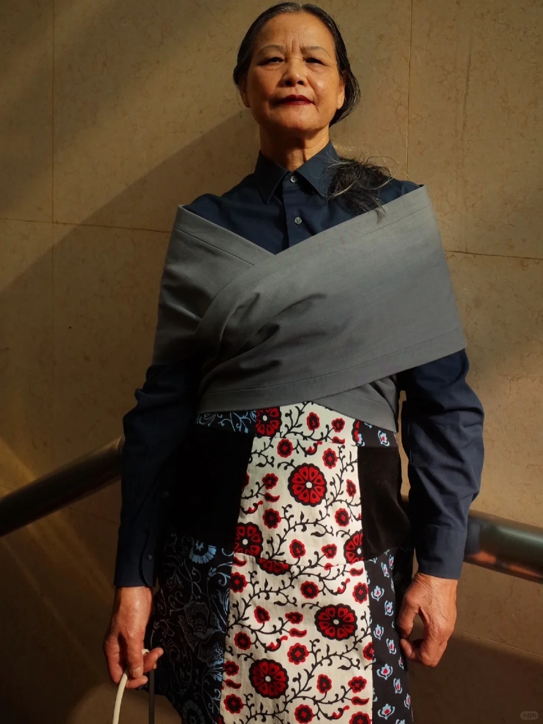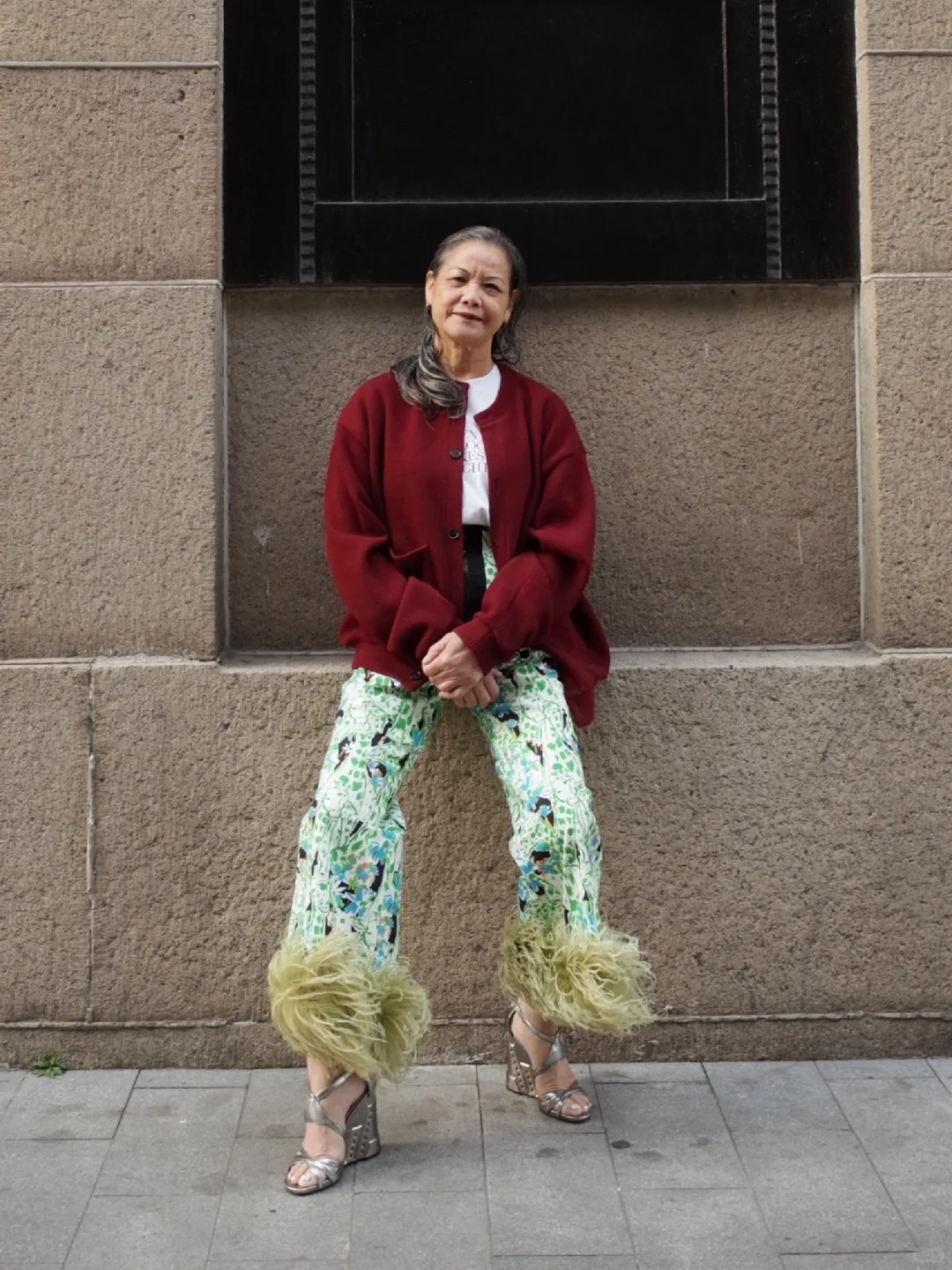 現年70歲的覃婆婆做了40多年的醫生,即使退休後亦仍在家鄉開設診所,為患者們服務!2018年他們一家三口搬去上海居住,因天氣轉涼,她沒有厚實的衣服就隨便拿了兒子的舊衣服穿,而兒子亦會為她提出穿搭建議。漸漸地她發現了穿搭的樂趣,在兒子的激勵下她開始在社交平台上分享日常穿搭,亦意外地踏上時尚之路。