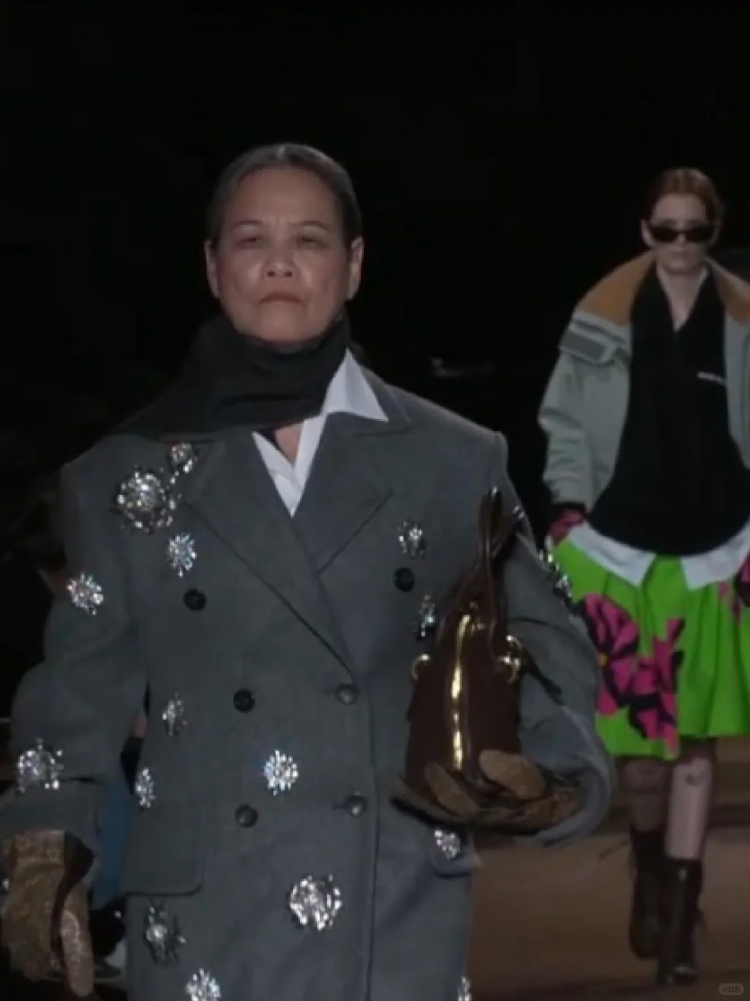在今年的Miu Miu巴黎時裝秀上,覃婆婆身穿灰色大衣、腳踩尖頭高跟鞋,自信慢慢地走著T台之路,雖然已年過半百但氣勢卻毫不輸洩!覃婆婆在社交平台上表示某天收到了Miu Miu走秀的邀請參加巴黎時裝大秀,而邀請方對走秀人選要求非常嚴格,基本都是專業模特、演員或是有故事的女性,所以她對於受邀一事十分驚訝!