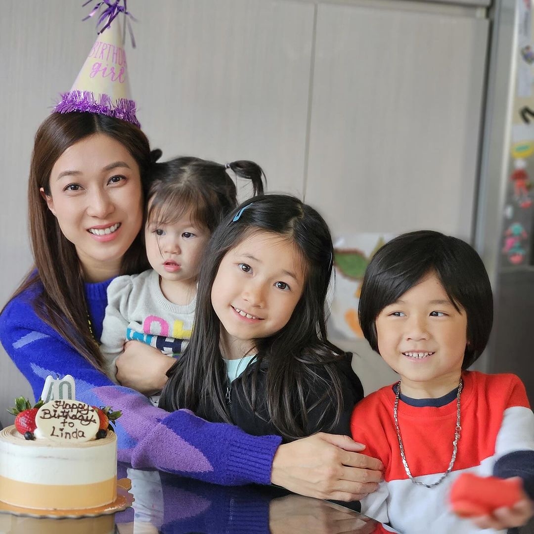 鍾嘉欣與三名子女慶祝40歲生日被讚凍齡!大女臉型神似媽媽,兒子擁有超濃密秀髮~