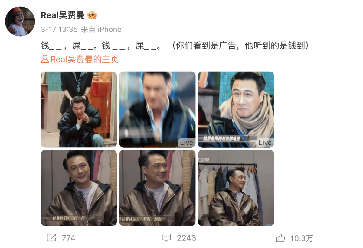 由於吳鎮宇近期在內地節目《無限超越班2》擔任評審,因此兒子吳費曼(Feynman)不時會在微博評論爸爸吳鎮宇的表現。不過近日Feynman突然貼出一張爸爸吳鎮宇在電影《無間道Ⅱ》中飾演角色「倪永孝」的黑白遺照,並寫道「號主本人因意外離世,永遠懷念!」。之後Feynman補充道:「重新認識一下,我叫王晶衛不認識甚麽吳鎮宇,不認識誰是吳費曼,沒有看過無限造孽班。本人不上學的不識字,在一家黑膠店上班。以上都是語音輸入。」雖然不久後Feynman刪除了帖文,不過消息一出,馬上引起了網民熱烈討論。