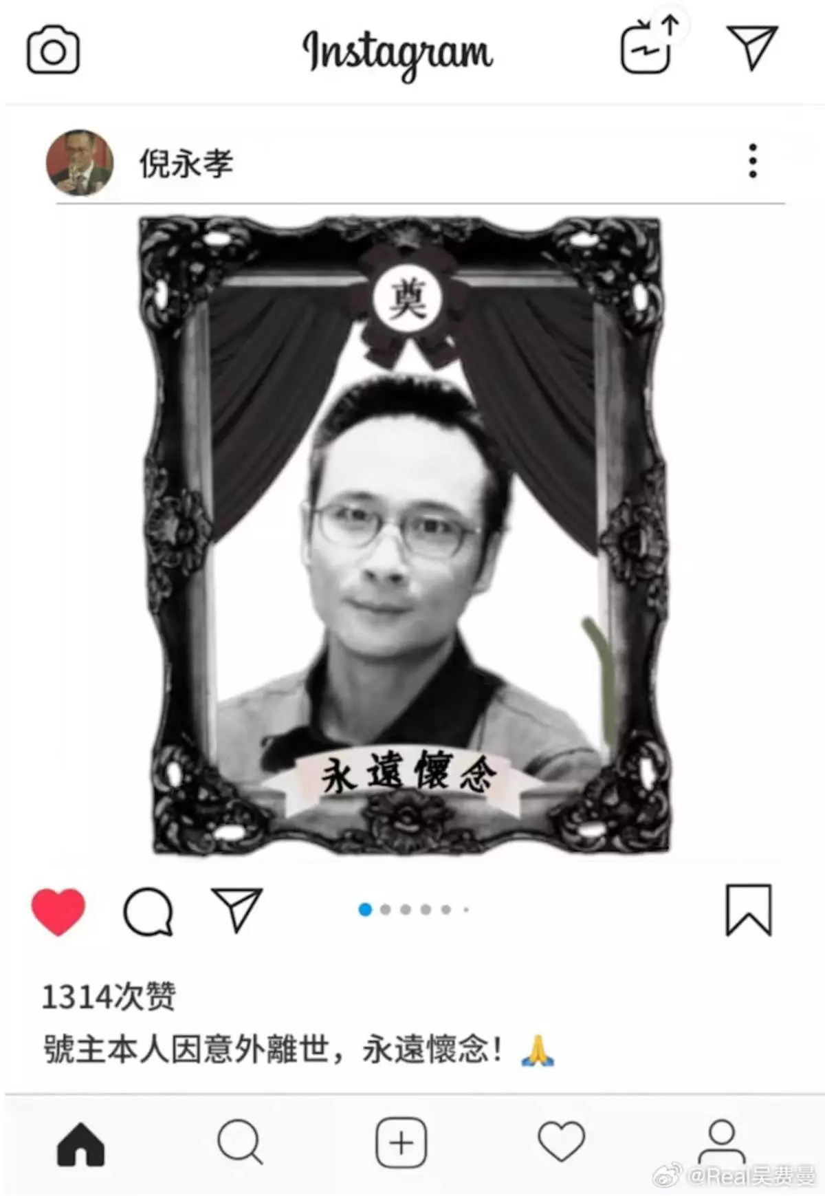 突然貼出爸爸吳鎮宇「遺照」
