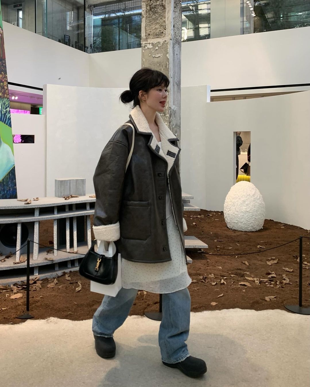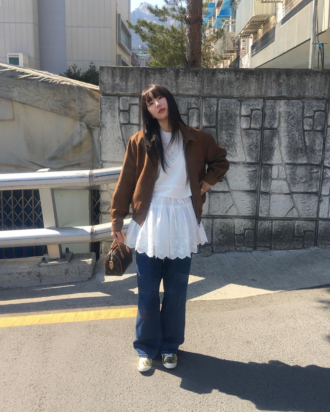 白衣連身裙搭配牛仔褲可以說是「Dress-Over-Pants」最基礎的入門款喇~乾淨清爽的白色連衣裙,配上藍色牛仔褲的搭配,不單止簡單率性,還多一種休閒的氛圍,而白色也會帶有一些仙氣感!如果選擇薄透材質的連身裙,還可以隱隱約約展現出好身材,給人一種清新少女感!
