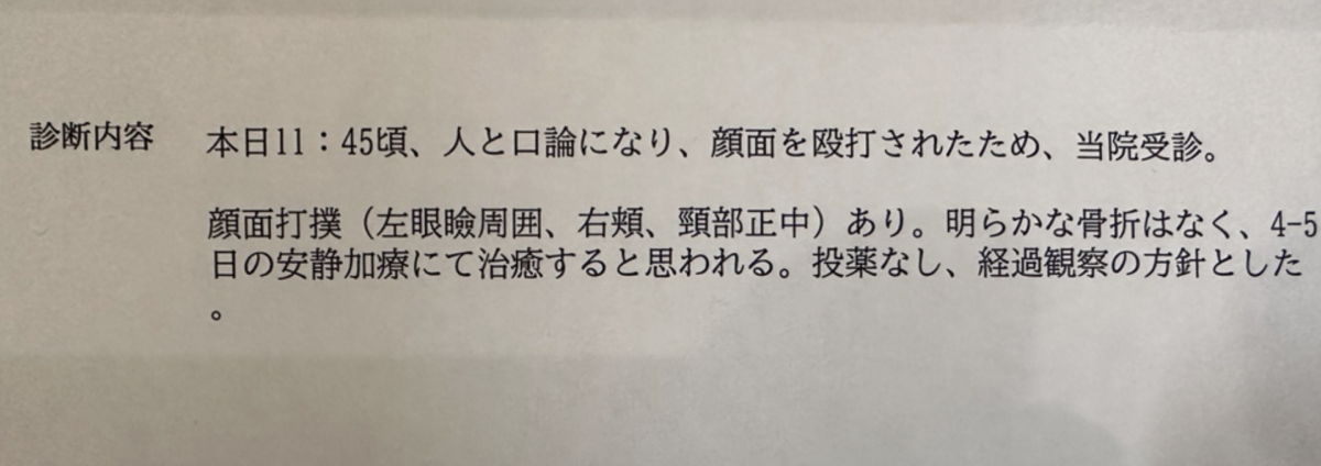 Reimon補充表示當時有職員走來問事發經過,他有要求職員讓他坐回本來想坐的位置。但職員卻向他表示辦不到,事後網友決定報警處理。但Reimon表示日本警方不太積極處理事件,又指這情況未必可以捉到襲擊者。因此Reimon只好去醫院驗傷,並在社交平台公開自己的傷勢。趁這次機會讓大家知道原來世界上有這樣惡劣的粉絲!