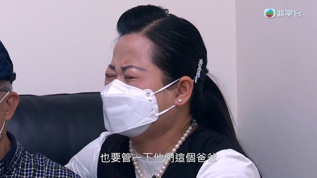面對這個狀況,「新何太」表示很難受:「好心痛,我老公夾喺中間,啲仔女竟然咁對佢」,之後還攬着何伯哭了起來,再說:「佢唔應該受呢啲苦,佢個人咁好,子女應該理吓個老竇」。她更表示曾勸老公回到子女身邊,但何伯卻吞藥欲輕生,她邊哭邊說:「我走入去,個缸全部係血。嗰時我都唔知點算,我話『你唔可以死,你死咗,將來你啲仔女嚟搵我算帳』,我就變咗罪人」。