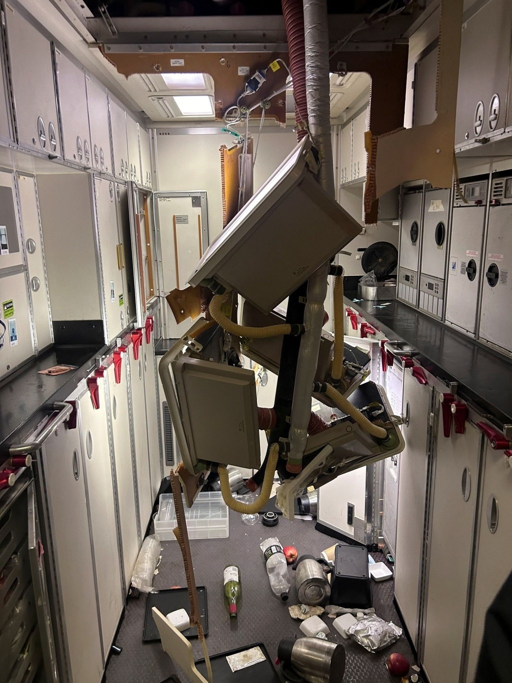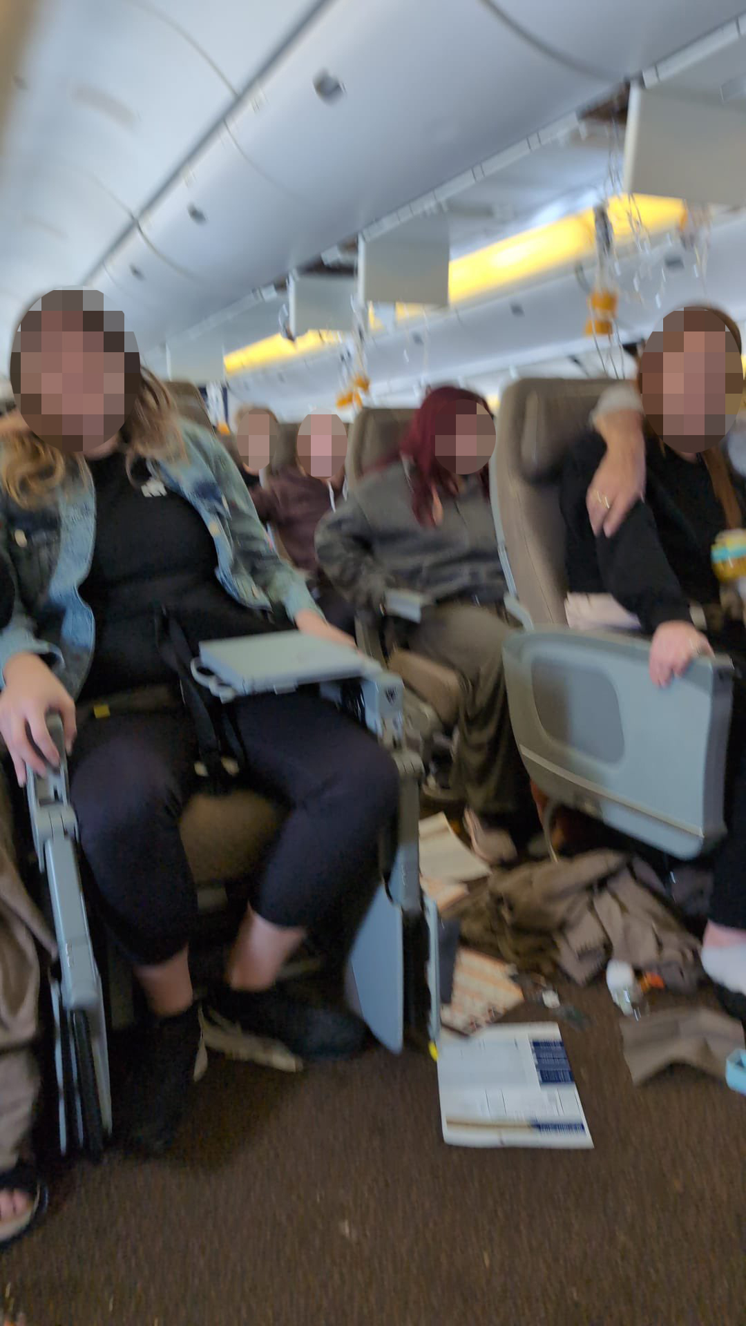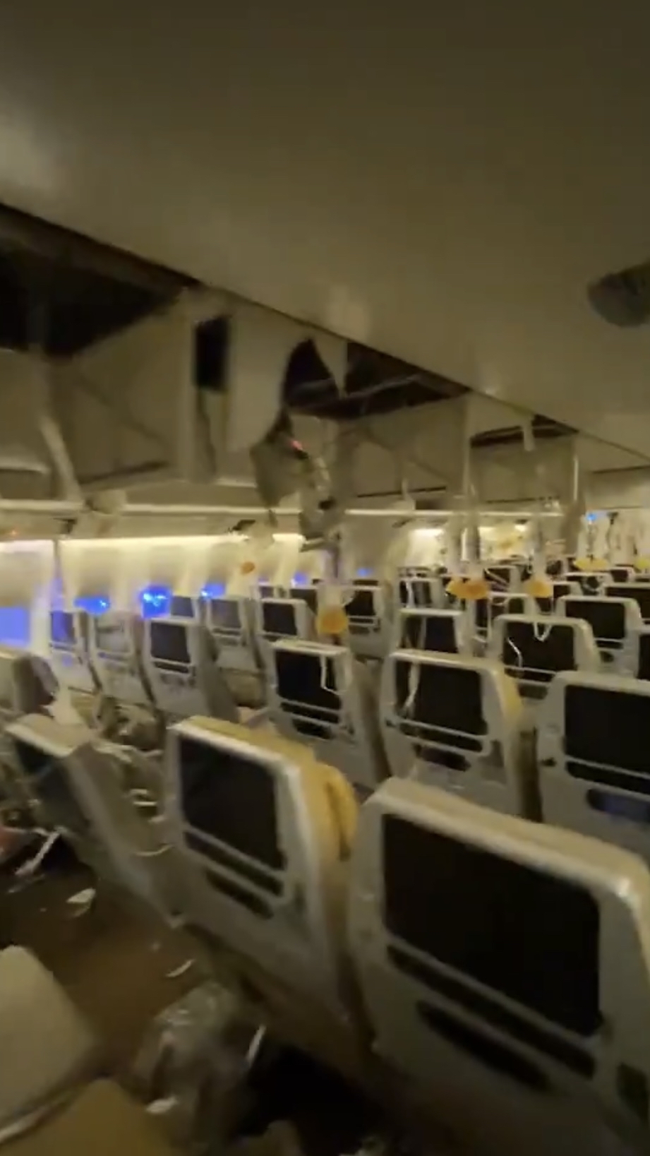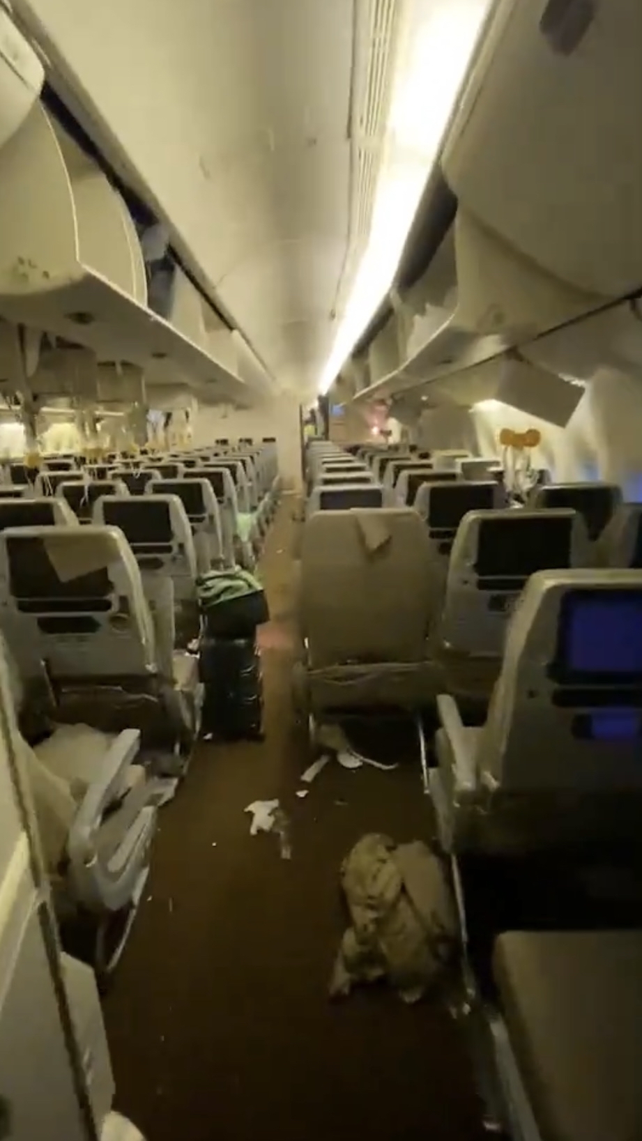 根據網上流傳的影片及相片,可以看到機艙內天花板鬆脫、滿地都是雜物、部分氧氣面罩彈出、有乘客倒臥在座椅旁,更有空姐及乘客臉上都是血,當時機上的情況可怕又混亂。