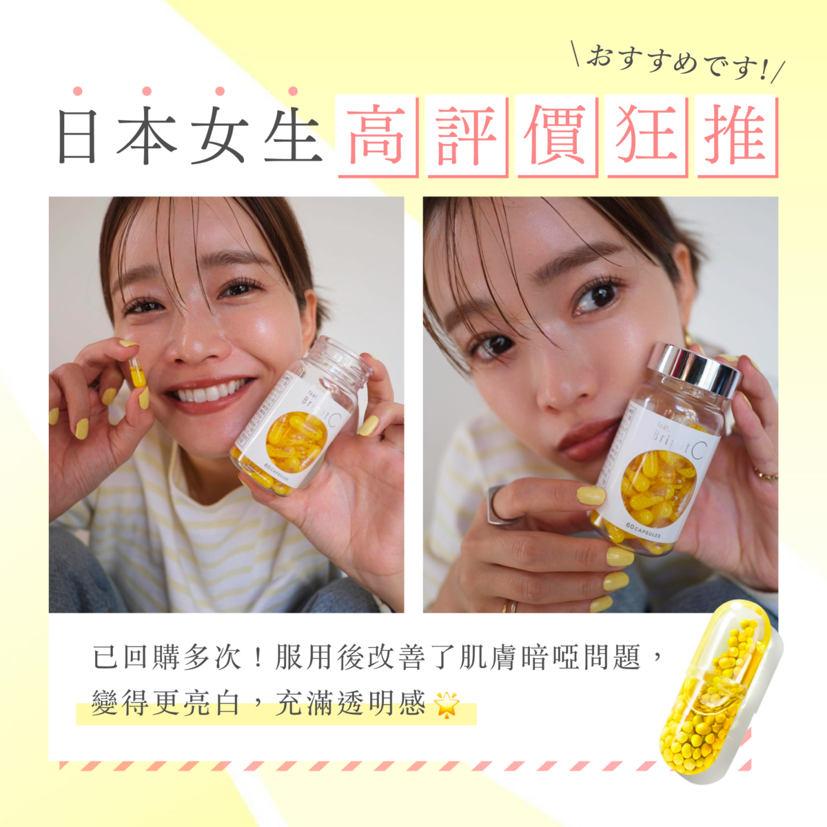 Bright C不僅受到日本女生的熱烈追捧,就連日本專業的美容皮膚科醫生山下真理子也十分推薦!她指出,維他命C為最佳的天然美白成分,因此向想變白的女生們推介Bright C這款以維他命C為主要成分,而且是「緩釋劑型」的口服美白產品。Bright C採用日本Licaps®液態膠囊 x 晶球創新技術,將更容易吸收的液體狀天然美容成分,以及特製維他命C晶球注入膠囊內,提供良好穩定的吸收率,令美白淡斑功效更持久,連醫生也讚口不絕!