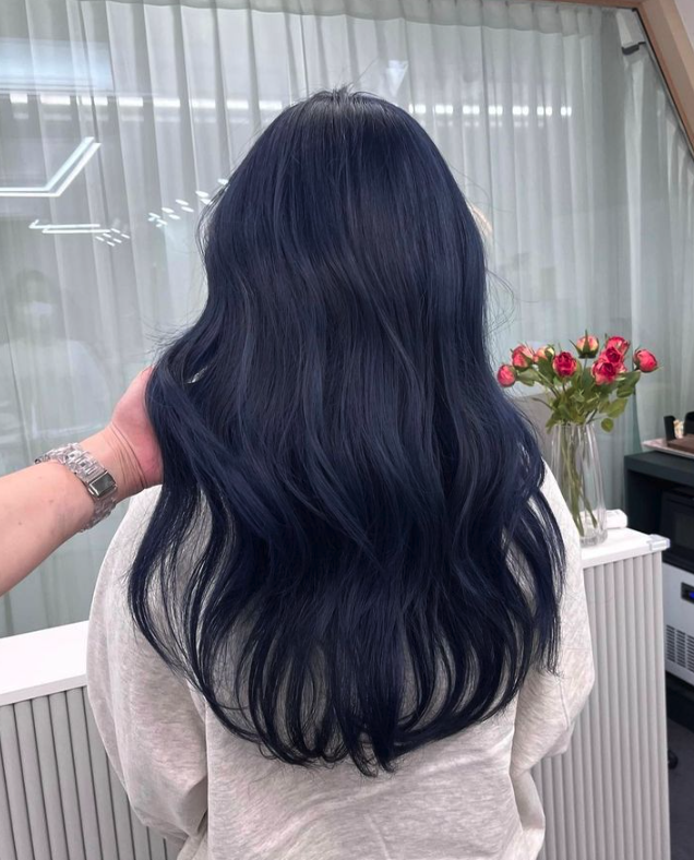 霧面藍黑色是低調的黑茶色配上深藍色,染完會有種神秘又有氣質的感覺~藍黑髮色可以吸收光線,減少面部明暗對比,達到修飾臉型的效果!深色調又可以突出面部輪廓,令臉部線條變得鮮明立體,視覺上有顯瘦2KG的效果。