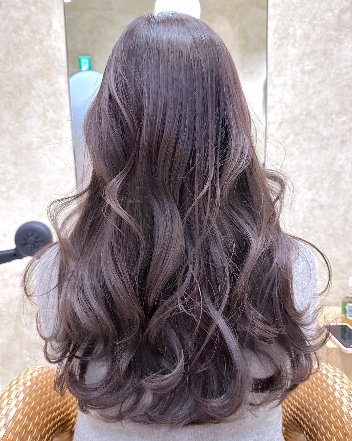 霧面灰紫色結合了灰色跟紫色兩大色調,讓髮色看起來不會那麼沉重,低飽和的色調能帶出神祕感,也有消腫的視覺效果!