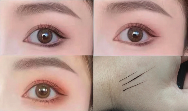 雙眼皮的眼線畫法:由於雙眼皮的褶皺有時會過長,眼線容易被遮住,妝感不明顯。解決方法是在畫眼線時,將線條適當上移,尤其是在眼尾部分稍微加粗或拉長,這不僅可以放大眼睛,還能增加深邃感,讓眼神更有層次。