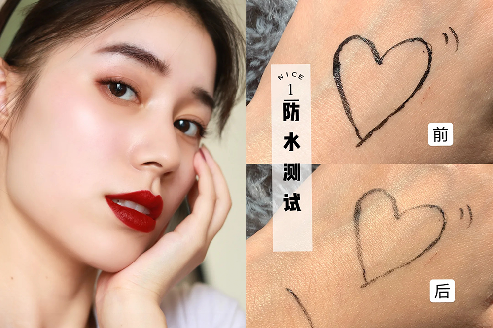 也有用家表示真的不暈染,在手上面試了一下,過了數秒後擦拭它都絲毫沒有化開。顏色也很自然的,筆頭很柔順。
