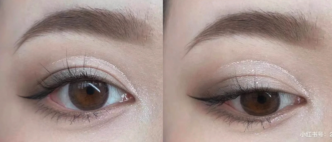 單眼皮的眼線畫法:重點在於下眼線後段的三角區。為了強調眼睛的輪廓感,下眼影不要緊貼睫毛根部,而是稍微向外延伸,在下睫毛外1-2mm的位置畫出一個小三角形,這樣能放大眼眶,讓眼睛看起來更加有神。對於新手來說,使用棕色眼影搭配斜角掃操作會更加容易,線條也能更柔和自然。