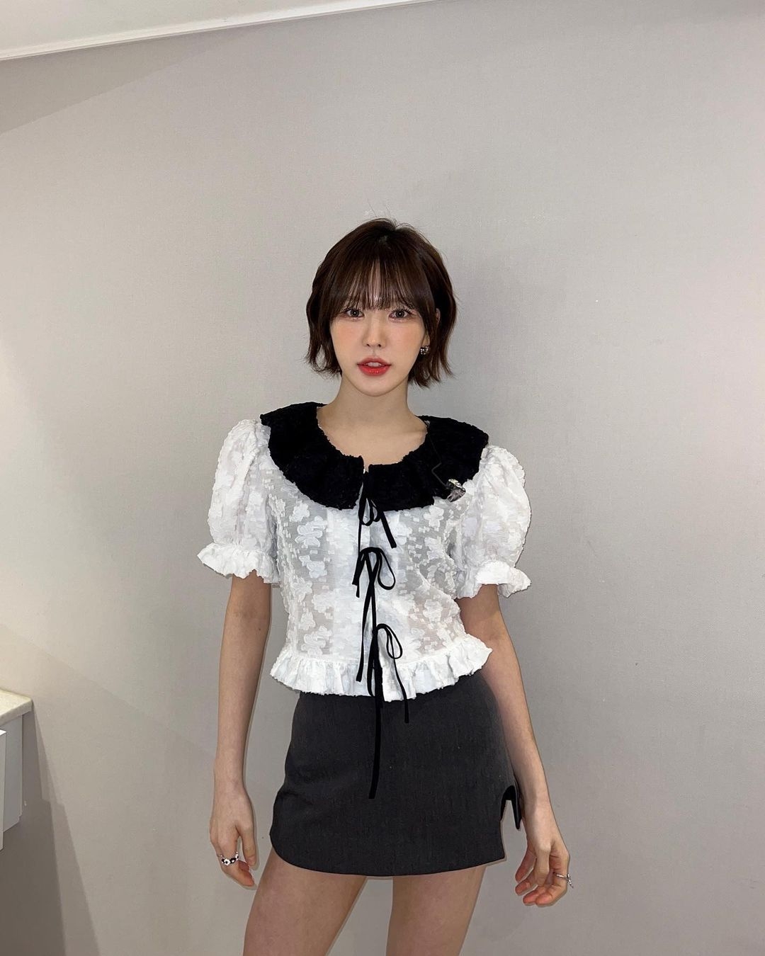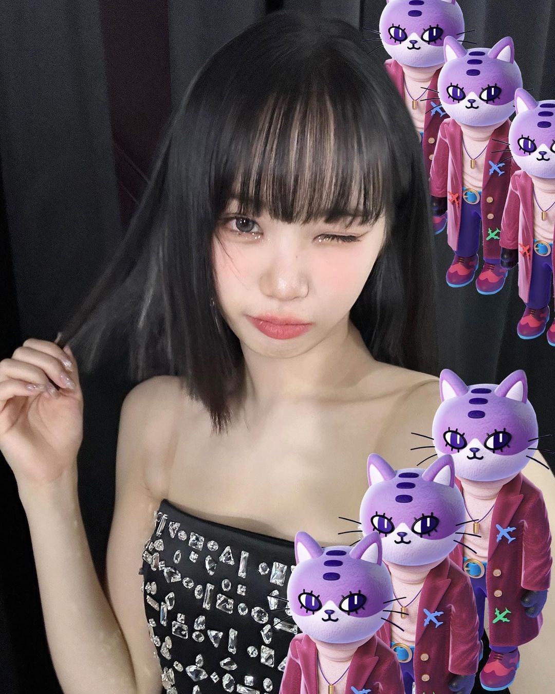 除了Hanni的少年感短髮,今年最流行的也不得不提LE SSERAFIM 金采源的齊瀏海和及肩短髮,自然垂直的俐落髮尾,能夠凸顯出精緻的五官,讓人感覺精明幹練。而且及肩髮型還能適當的修飾方圓臉,加上齊瀏海的造型可以讓臉型看起來更小,還有減齡的作用!