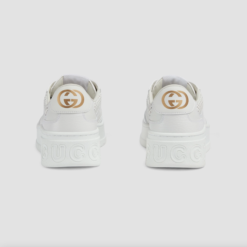 Gucci的這款GG運動鞋將品牌獨特的雙G標誌融入其中,展示了其高端奢華的特點。無論是與裙裝還是褲裝搭配,都顯得十分別緻。