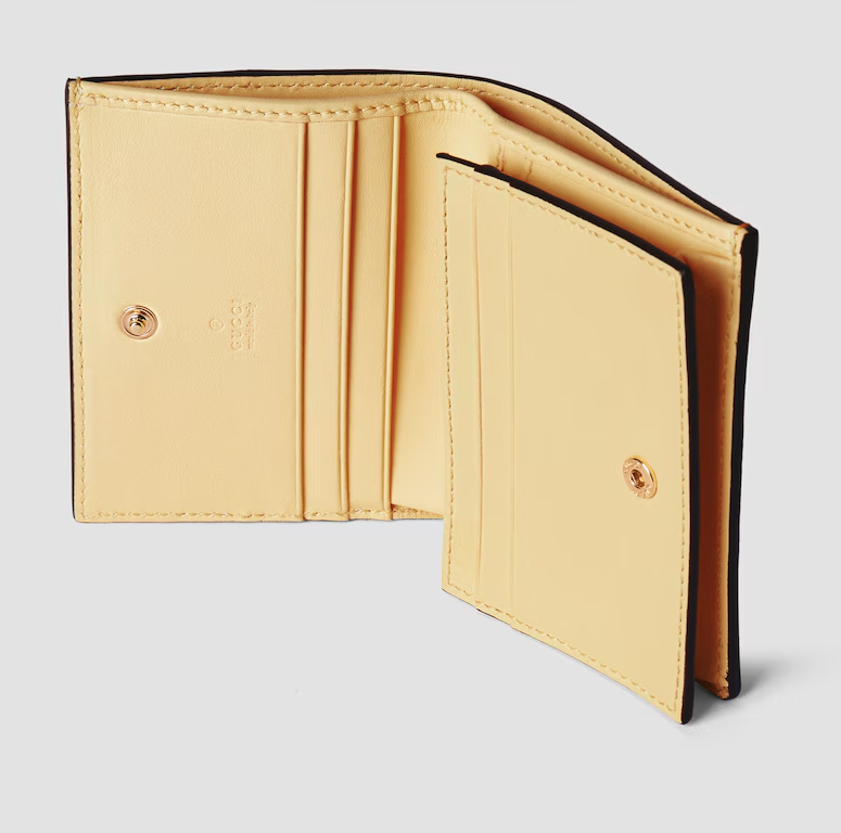 這款中型銀包標誌性的GG圖案大玩質感和光面效果,明亮的玫瑰米色調,特別吸引眼球,內部分為多個隔層,是實用與美觀的完美結合!