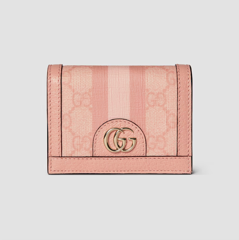 GG Supreme帆布是貫穿整個Gucci小型皮具系列的標誌性物料,今季的Ophidia卡片套銀包以清新的暗粉紅色調重新詮釋了這種物料,並配有同色系織帶條紋和淺金色配件,實用的間格,能夠輕鬆收納多張卡片和鈔票。