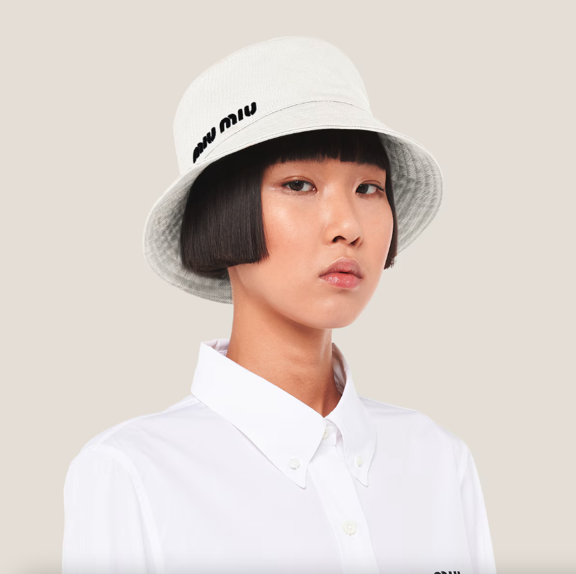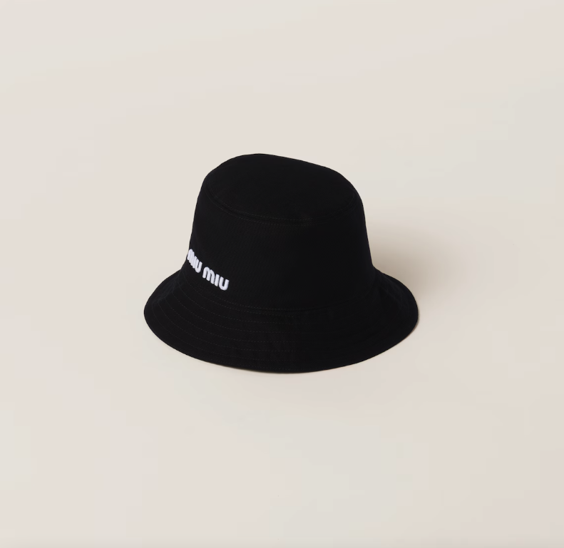 這款Miu Miu設計經典的漁夫帽以斜紋布縫製,飾以Miu Miu刺繡標誌,獨特的斜紋設計增加了視覺層次感,漁夫帽更可以修飾臉型!