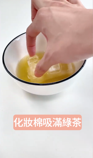 臉頰肌膚較薄、容易敏感及泛紅的女生可以嘗試另一個方法,就是在碗裡用少量熱水浸泡2至3個綠茶包,然後放入化妝棉,冰塊都同時放進去,比起直接上臉較溫和,濕敷後不但又降溫降紅的效果,更可以讓底妝更貼服~