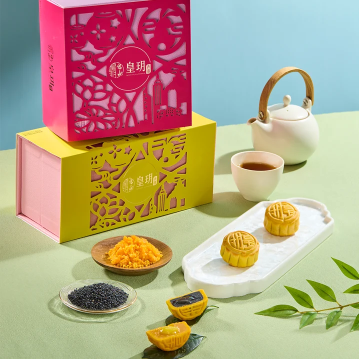 連續6年獲得「世界食品最高金獎」的皇玥月餅,今年推出全新的「低糖流心月餅」,分別有「低糖流心奶黃月餅」及「低糖流心芝麻月餅」,前者在減少糖分的同時,依然保持了濃郁的鹹蛋黃香氣和牛油幽香,咬下去時,奶黃流心的香甜瞬間在口中散開,但不會讓人覺得膩口。後者的內餡則充滿濃郁的芝麻香氣,帶有一種獨特的甘香,讓人一試難忘!