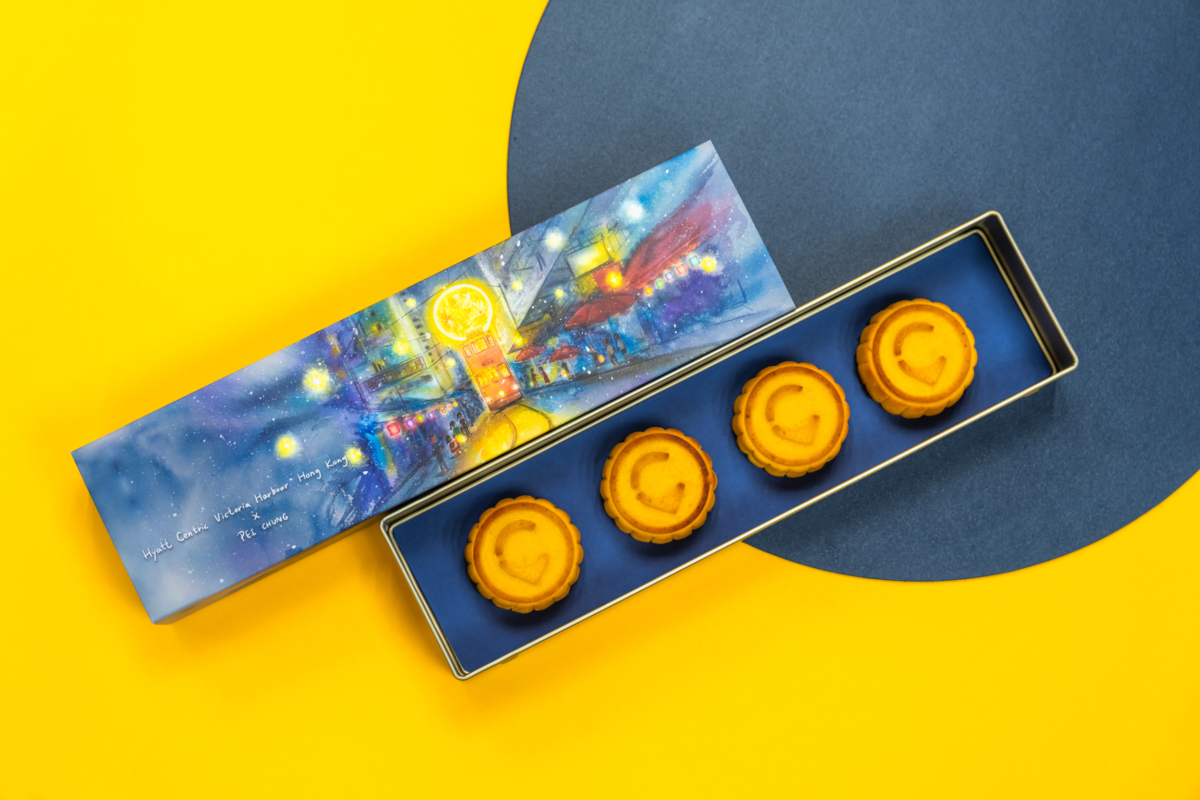 爲慶祝中秋佳節,香港維港凱悅尚萃酒店與本地藝術家皮忠(Pei Chung)合作推出經典奶黃月餅禮盒。禮盒由受歡迎的本土品牌「望月」於香港生產,內含四個獨立包裝的蛋黃奶黃月餅,以金黃餅皮包裹著綿密幼滑的蛋黃和奶黃餡,每口都充滿蛋黃鹹香!