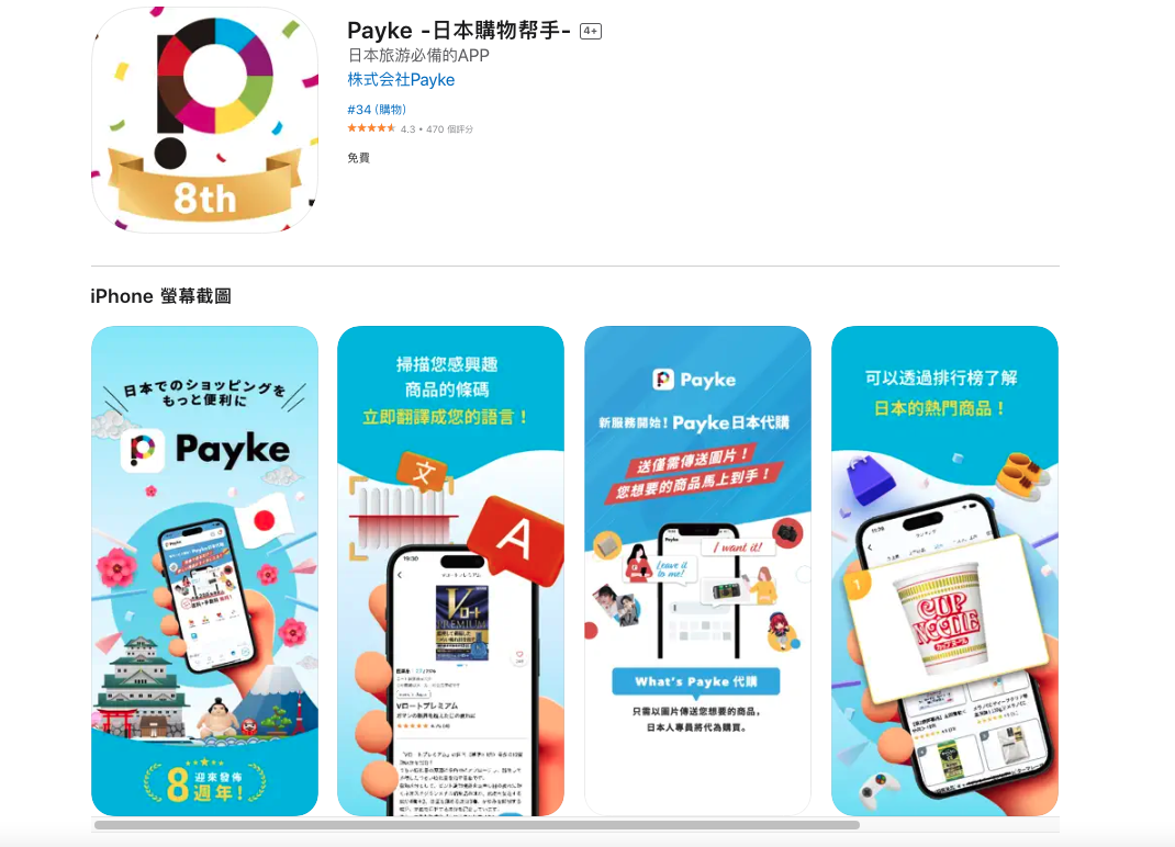 「Payke」是一個幫助旅客購物時翻譯商品的日本旅行App,只要打開App掃描商品條碼,就會將商品資訊,產品名稱、成分及使用說明翻譯成中文,非常方便!