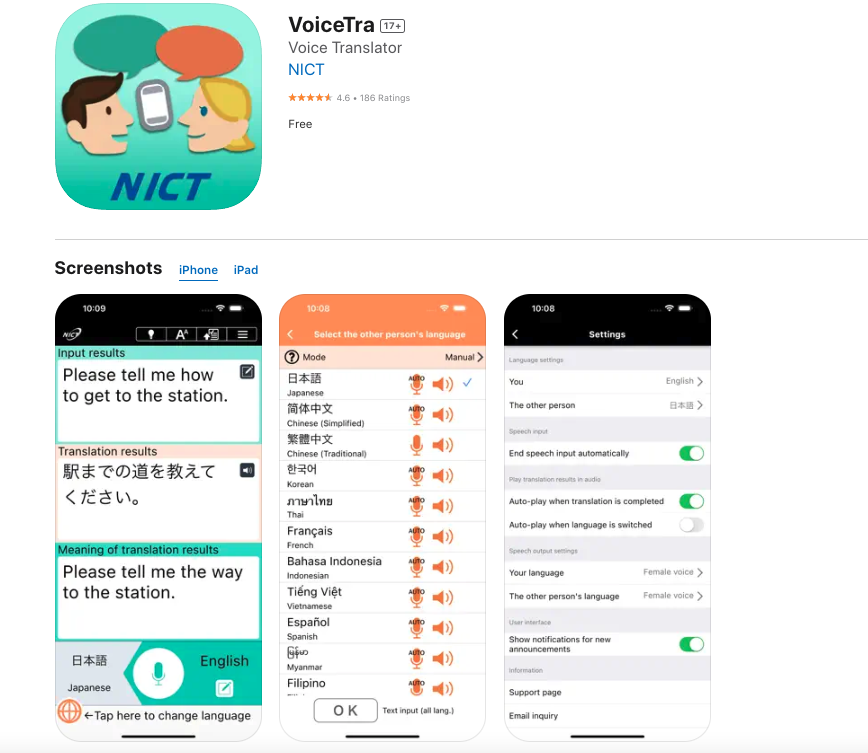 VoiceTra可以即時將你說的話翻譯成日文,或將日文翻譯成廣東話或中文,一共支持31種語言!即使是不懂得日文的朋友,都可以放心遊日!