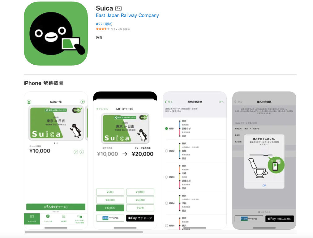 Suica是日本的一種智能交通卡,推出了手機版Suica後非常方便,在Apple Wallet加入了Suica之後,可用於支付地下鐵、巴士、火車、商店及自動販賣機的費用,亦可以用信用卡增值、查看餘額及交易記錄。
