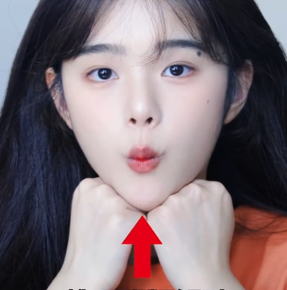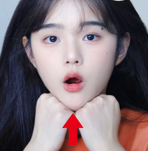將雙手握拳放在下巴位置,同時做出「o」和「wu」的嘴型,每次堅持30秒。這個動作可以改善臉頰凹陷和外輪廓不流暢的問題。