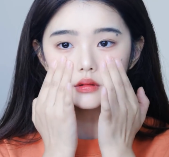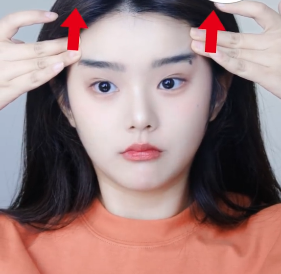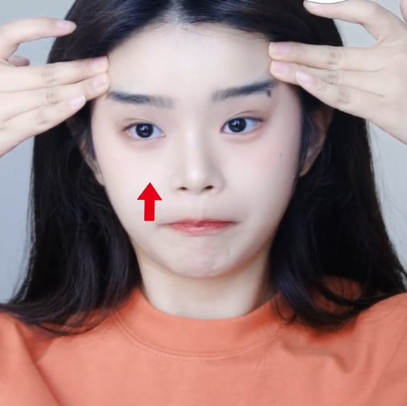 先在口中先含一口氣,再向口腔的上方鼓起,然後雙手按住眉尾向上提拉,每次堅持30秒。這個動作可以激活臉部肌肉,做完後會明顯感覺到顴骨有被推上去,輪廓也會肉眼可見的變得更柔和。