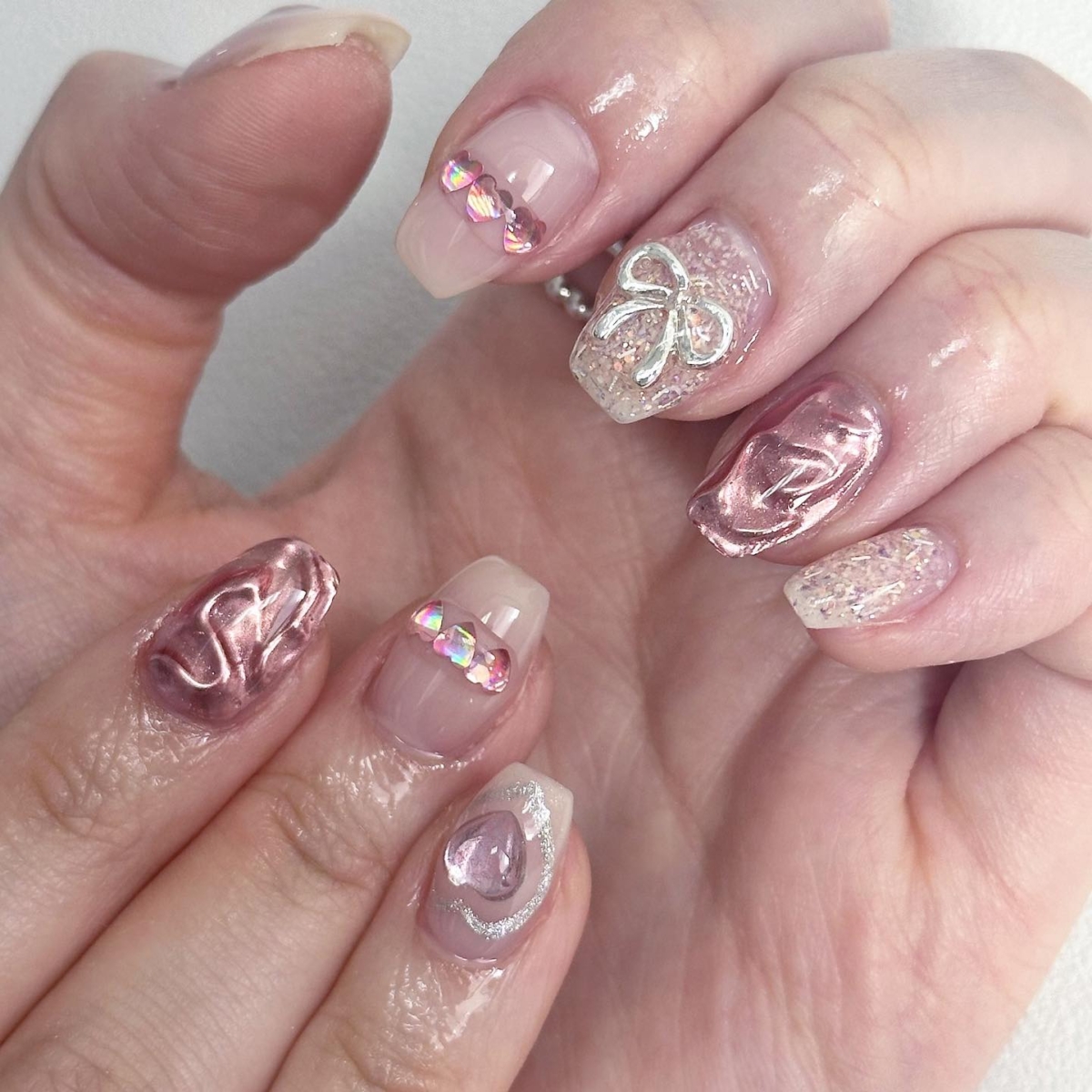 ENTP的人有創意、富有想像力,她們會比較緊貼潮流又時尚。這款美甲有齊近年大熱的蝴蝶結元素,又有粉色的極光粉及心心閃石,完全是緊貼潮流!
