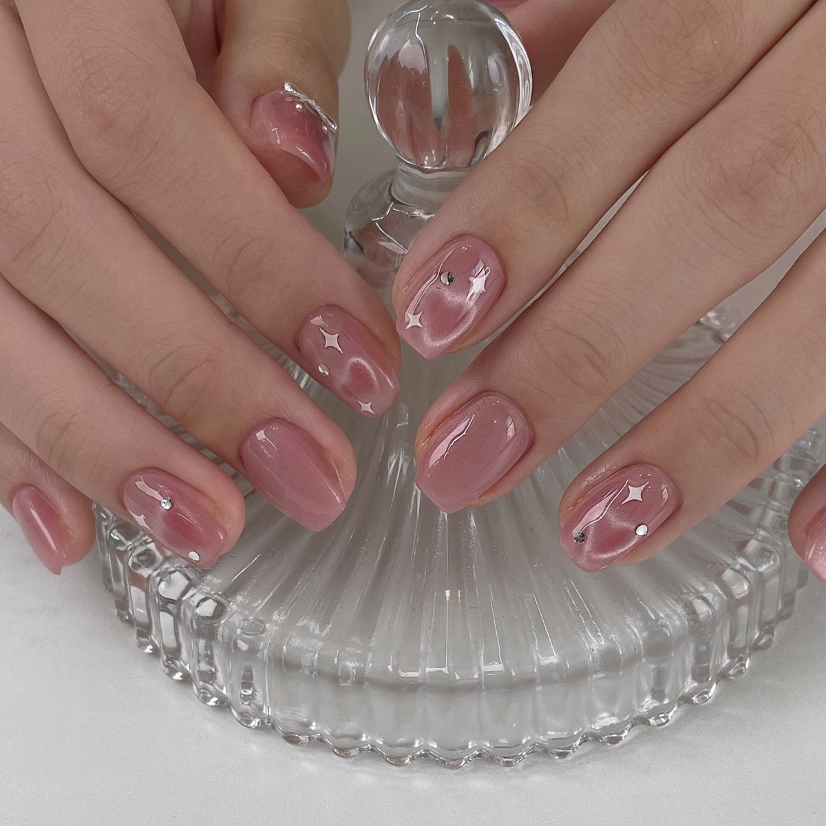INTP的人充滿理性色彩與內向個性,簡單得來帶點裝飾的美甲款就非常適合她們,這款美甲狀以淡粉紅色做底色,再做出愛心貓眼的效果,最後再貼上少量星星裝飾,低調得來有點特別~