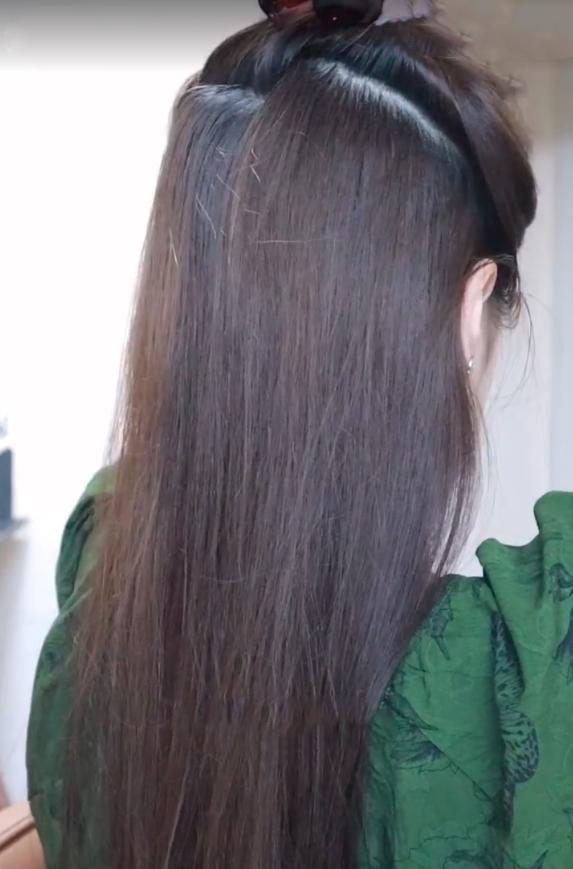 之後將上面的頭髮放下來,再整理好。此時,你就會發現頭型變得非常圓,而且橡筋完全沒有露出來,所以快來試試吧~