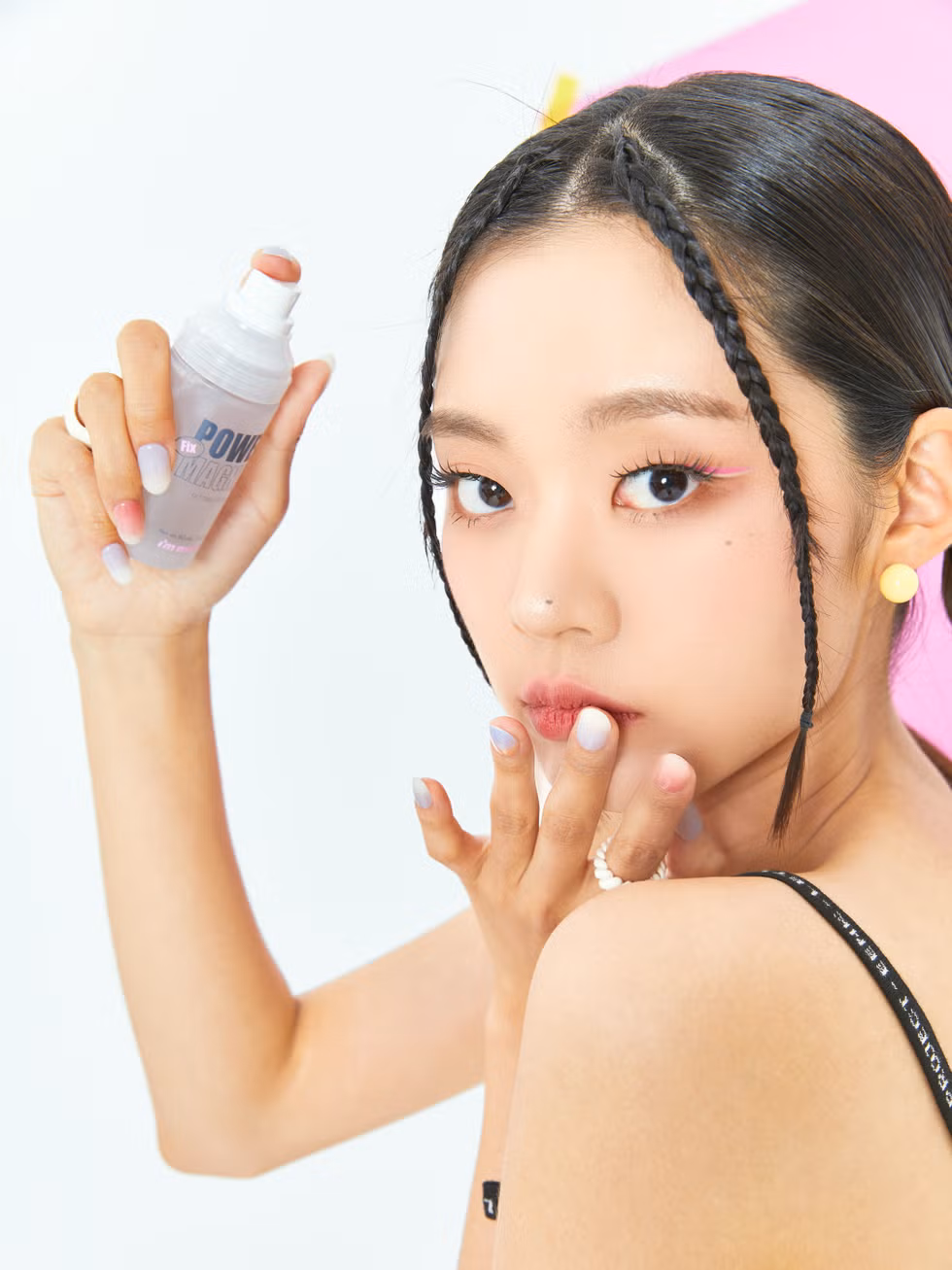 完妝後可以再全臉噴上一層定妝噴霧,讓噴霧在臉上成膜,固定住臉上的妝容,而且噴霧還能讓妝容看起來更加水潤透亮。