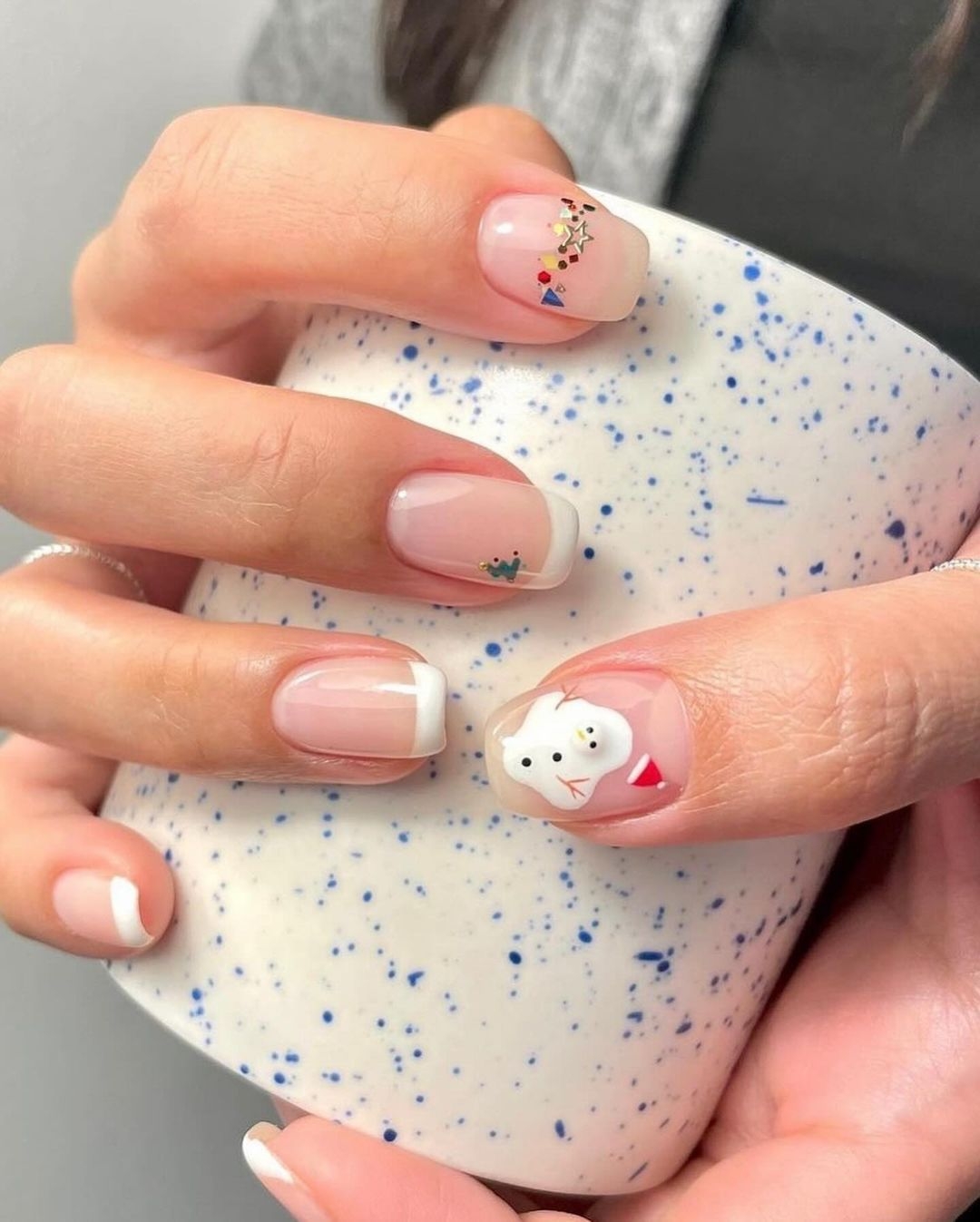 細緻的手繪雪人圖案搭配透明或淺色底色,可以展現冬季的柔美氛圍。