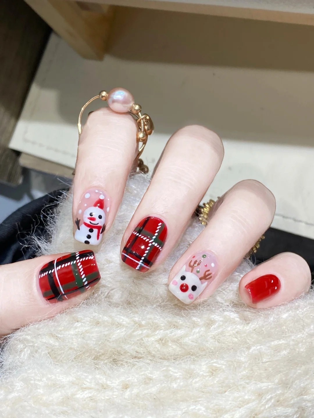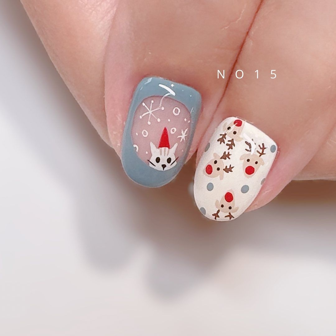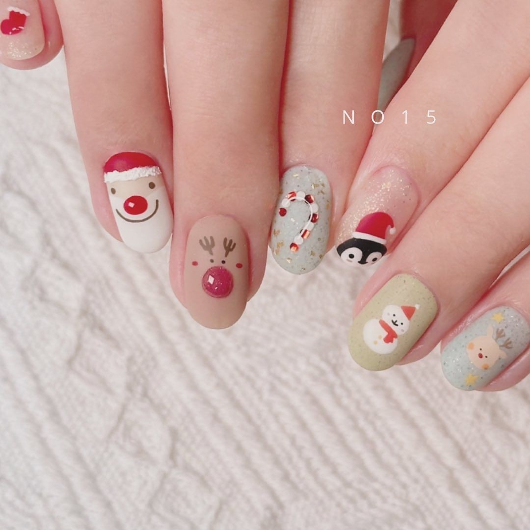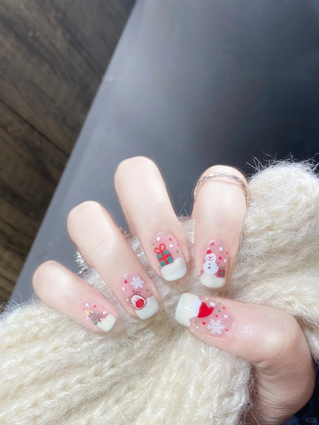 以活潑的色彩和生動的圖案為主,例如聖誕老人、麋鹿、雪人等卡通形象,讓指尖成為焦點。