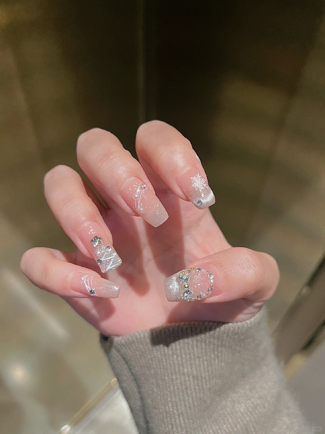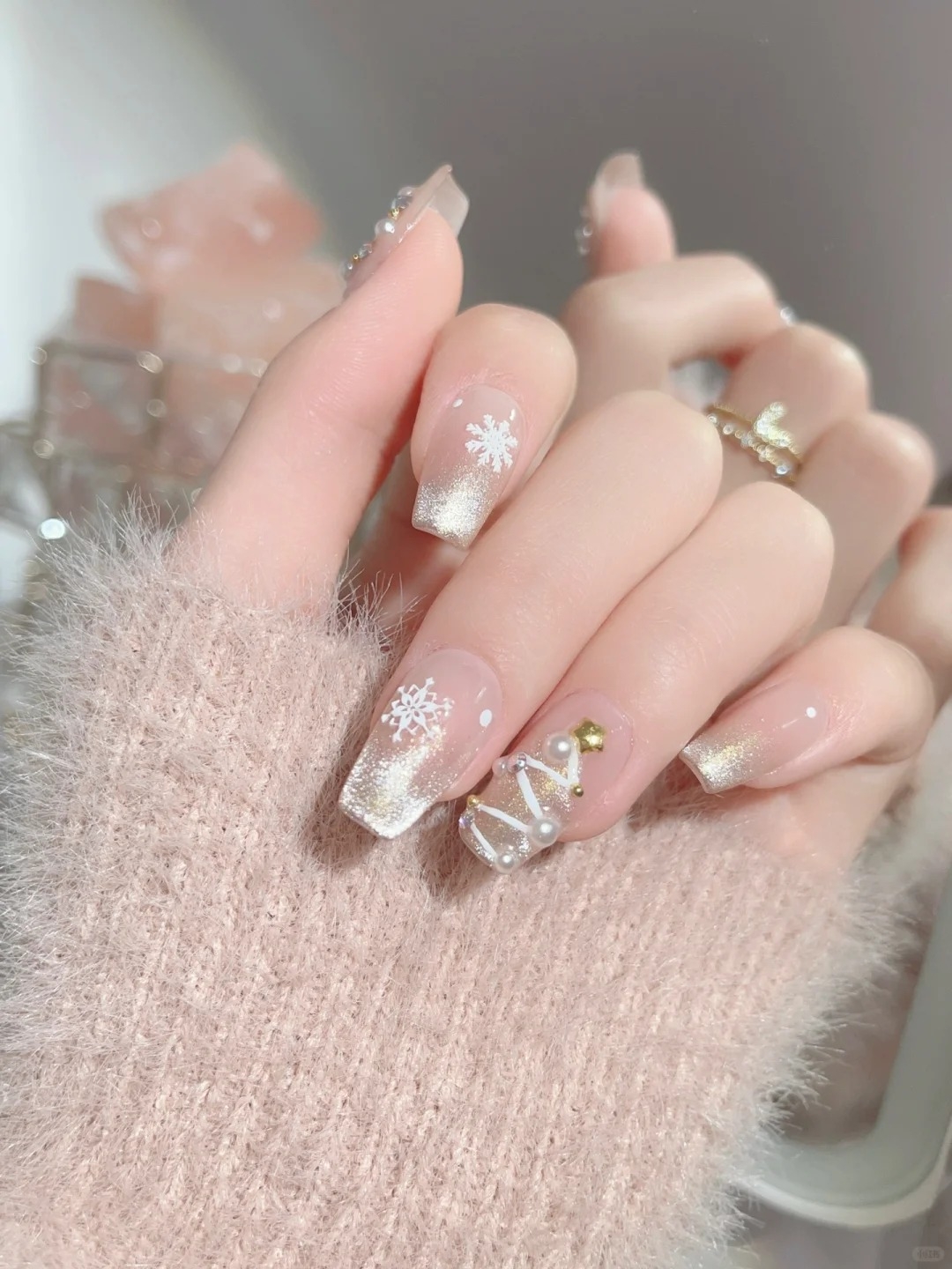 粉色底色上點綴著銀色的雪花圖案,讓人彷彿置身於冰雪世界中,是低調而優雅的選擇。