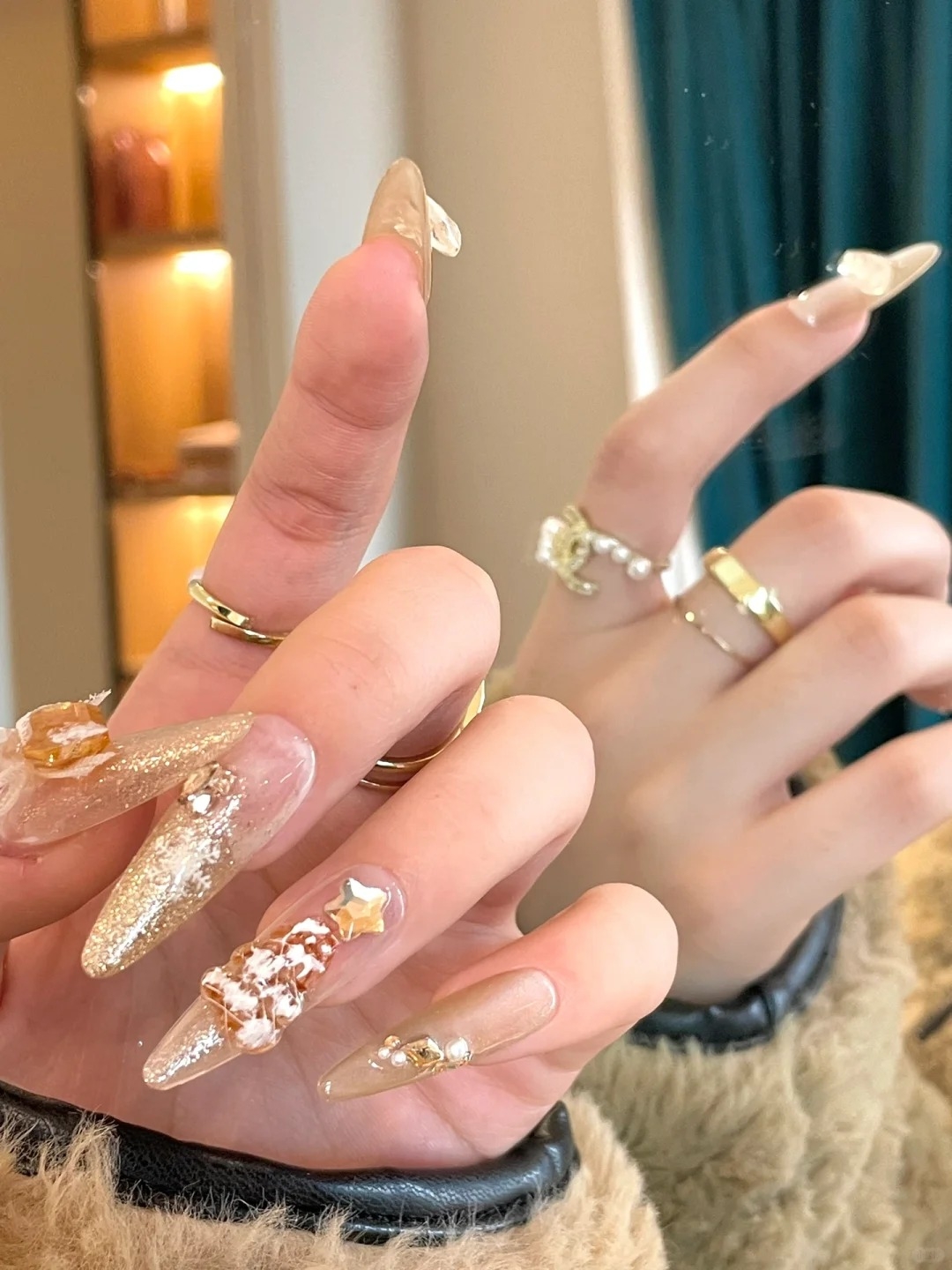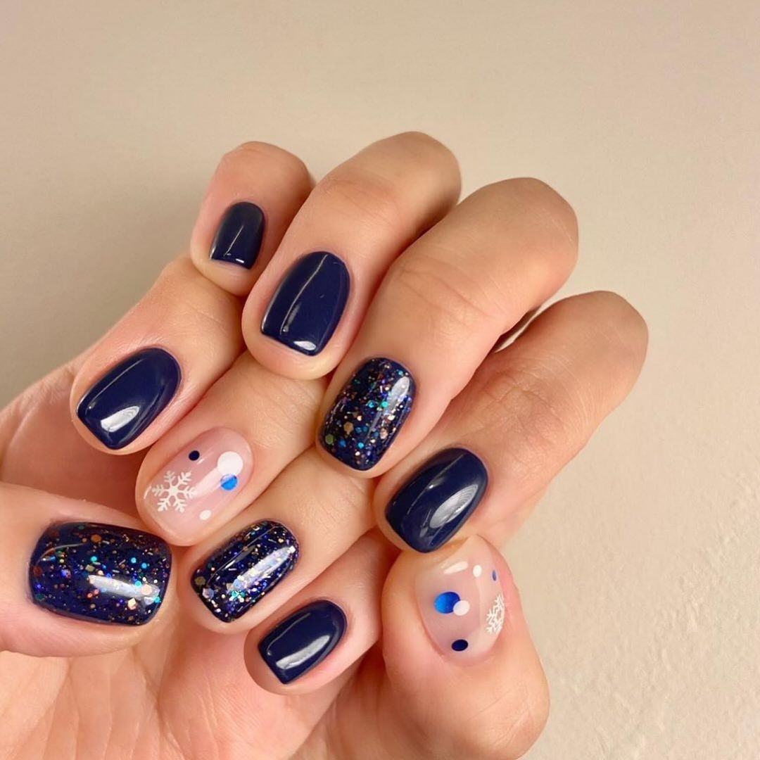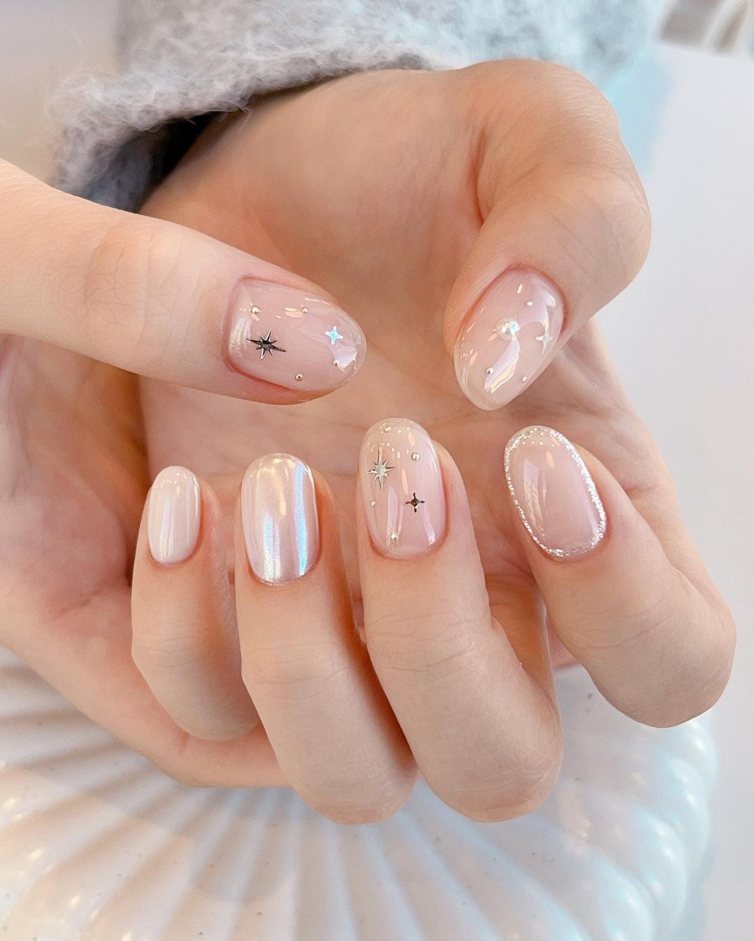 使用深藍色或黑色作為底色,加上大大小小的星星裝飾,讓指甲宛若夜空般神秘迷人。