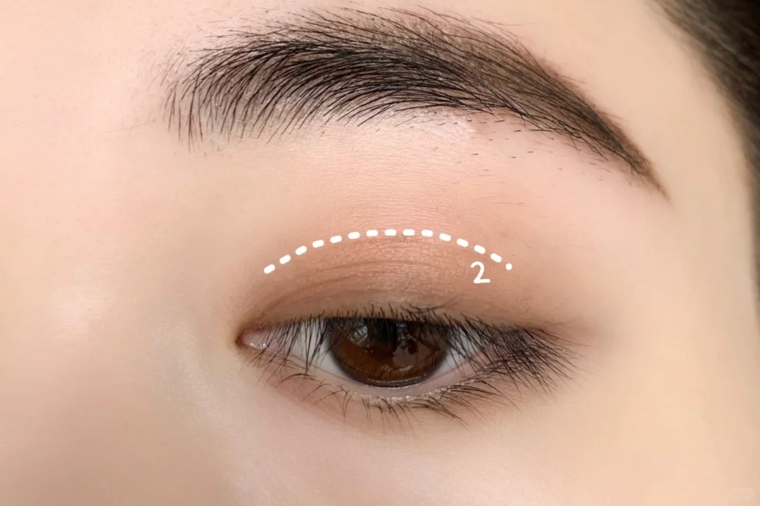 STEP 2:取深一階的顏色在眼皮加深暈染