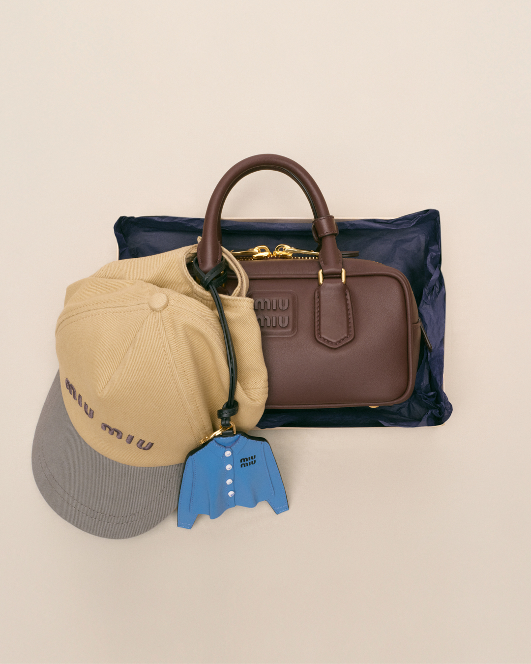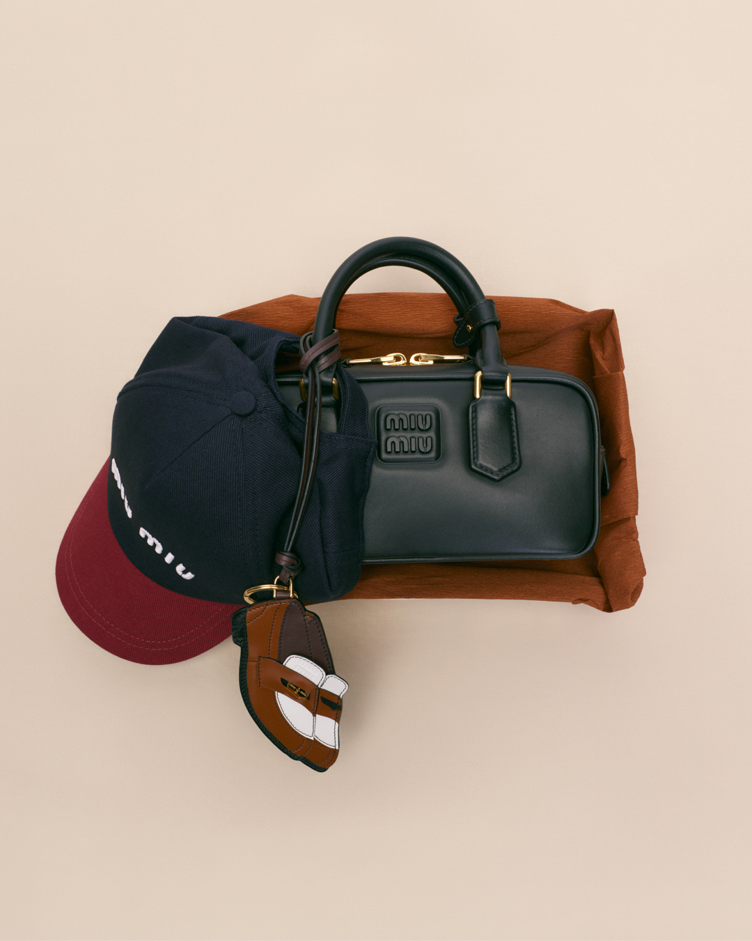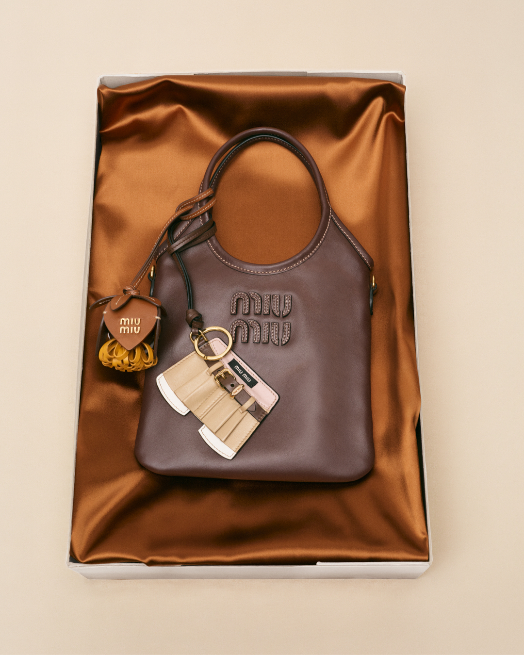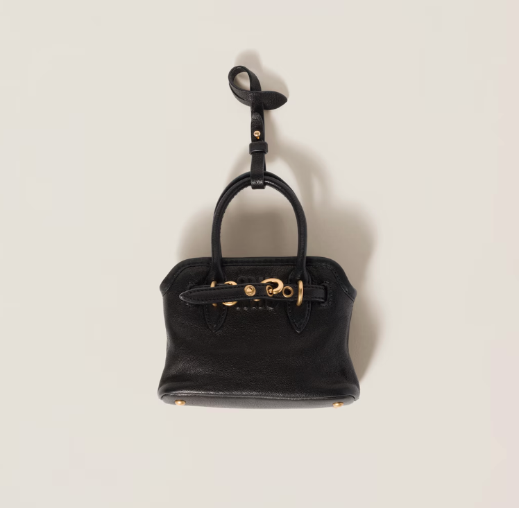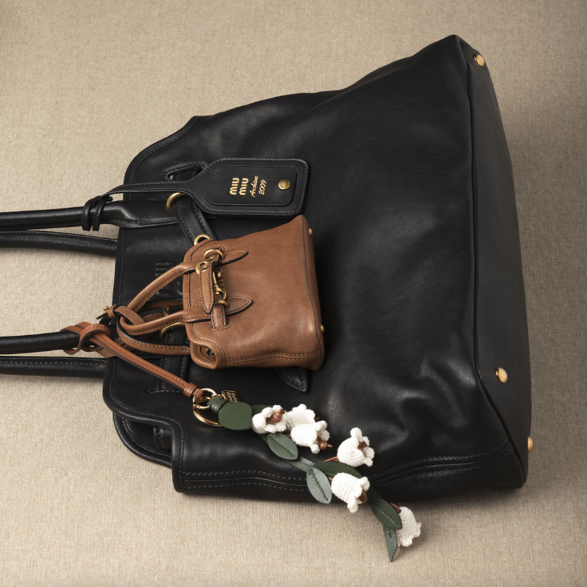 今次Miu Miu將芭蕾舞鞋、襯衫、迷你裙、樂福鞋及Aventure包款通通變成吊飾,Aventure包款吊飾的售價為HK$12,200,掛在手袋上吸睛又時尚,相信又會掀起一陣新潮流!